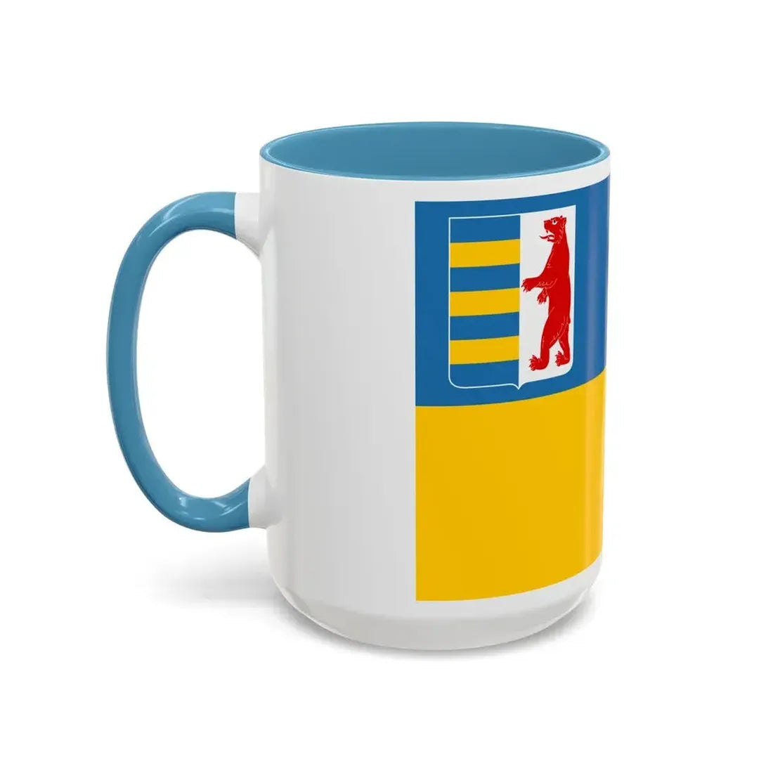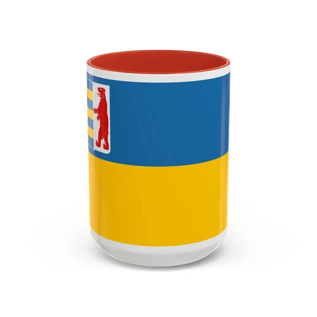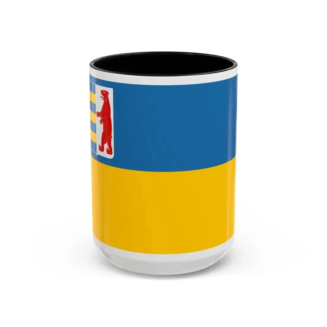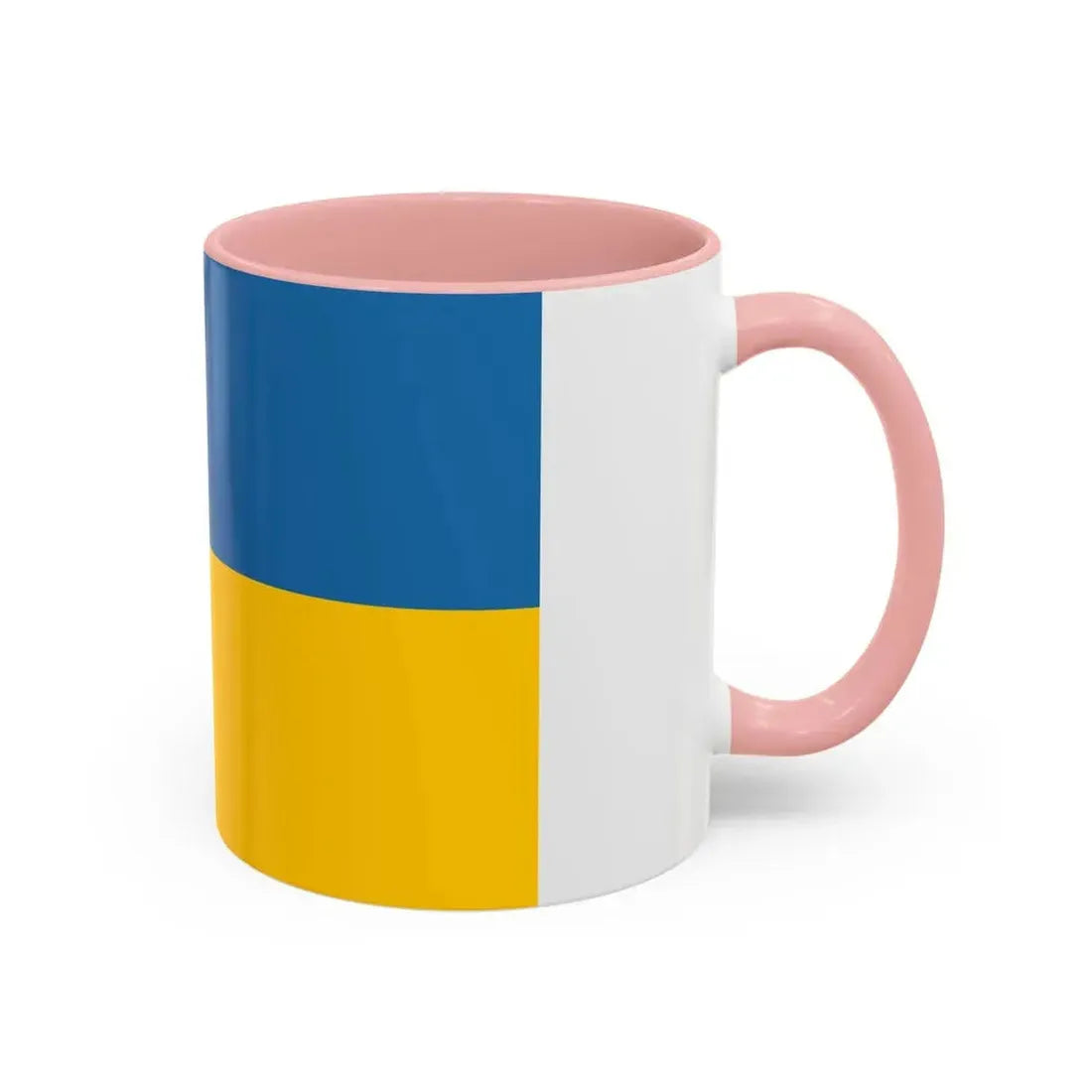 This Accent Coffee Mug showcases a design inspired by the Flag of Zakarpattia Oblast, Ukraine. The flag is a symbol of this historic region's unique identity, combining elements from both the Ukrainian and Hungarian heraldry. The mug makes an excellent addition for those who appreciate Slavic or Eastern European cultures, history buffs, or anyone interested in unique and meaningful design.