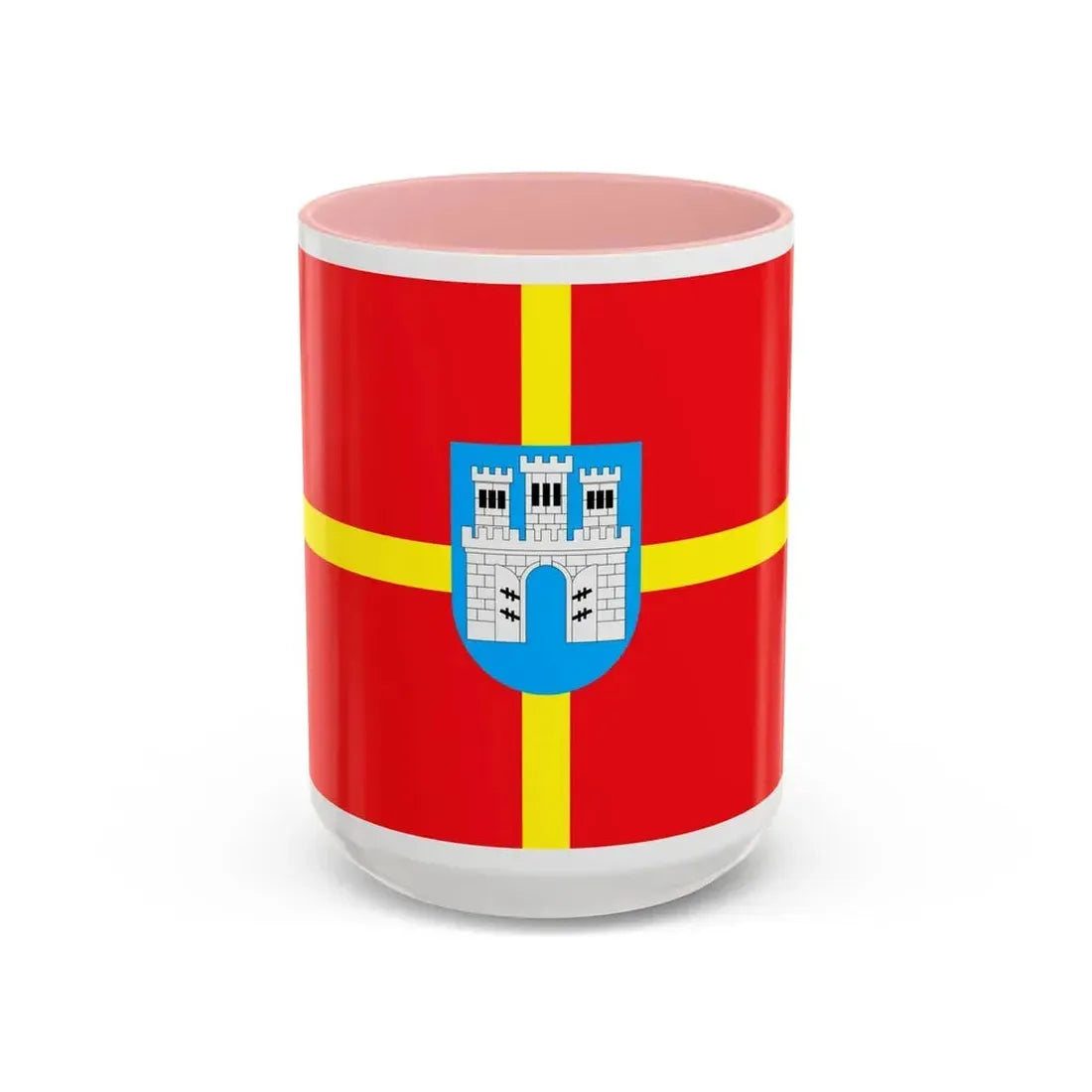 Accent ceramic mugs with a glossy white exterior and a colored interior & handle. Offered in 11 oz (≈330 ml) and 15 oz (≈440 ml), these mugs pair strong visual contrast with everyday durability — lead- and BPA-free.
