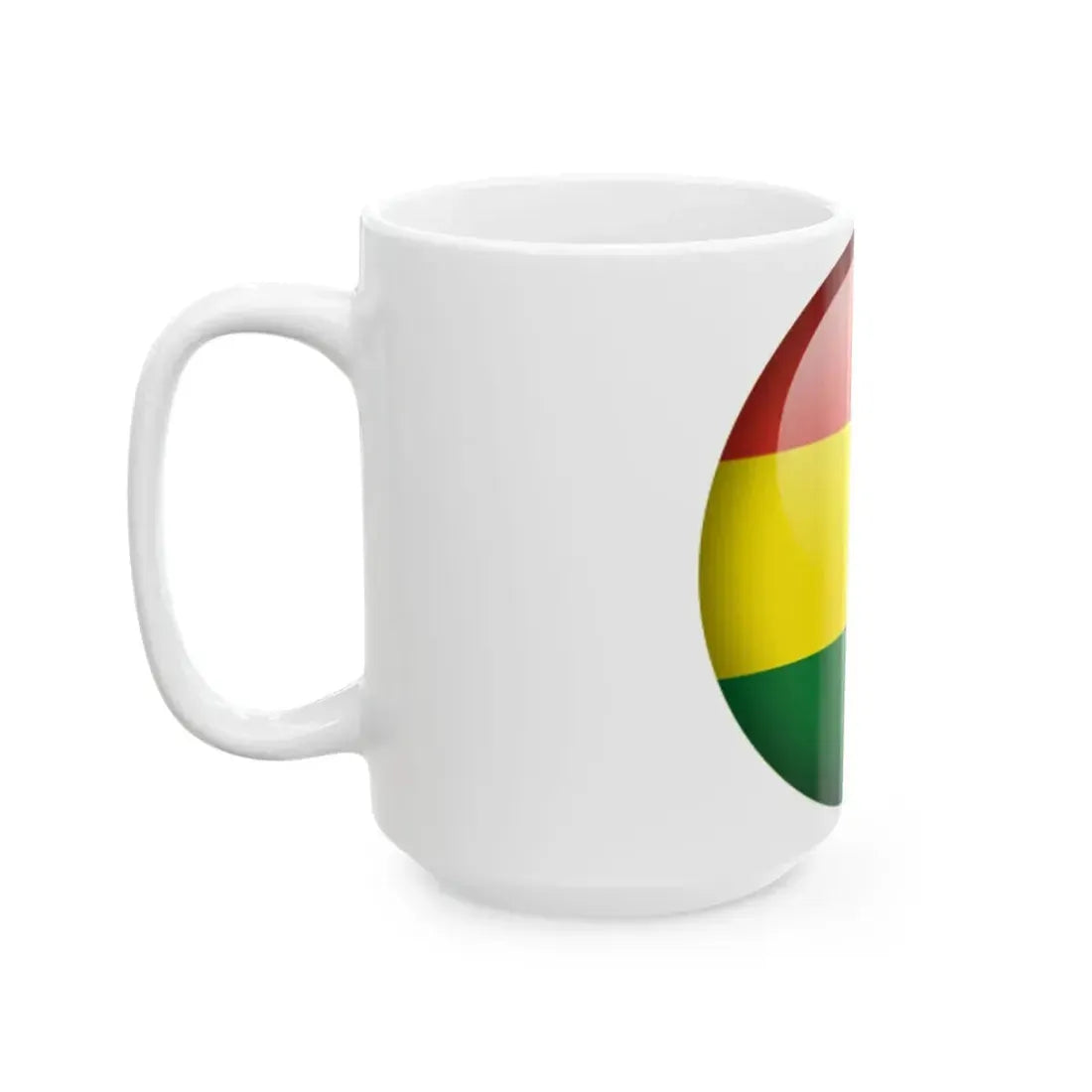 This White Coffee Mug showcases a distinctive design inspired by the Bolivian flag orb. The vibrant tricolor of red, yellow, and green, paired with the iconic moon symbol, represents Bolivia's rich cultural heritage and national pride. Ideal for coffee enthusiasts with a fascination for South American history or those who appreciate unique drinkware, this mug serves as a daily reminder of the beautiful landmarks and traditions found within this vibrant nation.