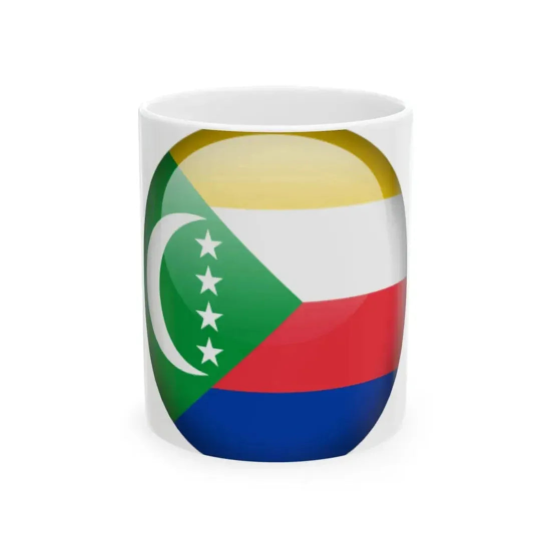 This coffee mug serves as an excellent representation for those who appreciate the unique aesthetics and symbolism of world flags or have a special connection to the Comorian culture. Its sleek white finish allows the intricate design to stand out, making it a perfect conversation starter at home or in the office. The Flag Orb Comoros White Coffee Mug is an excellent addition for any collection, and its construction ensures durability over time.