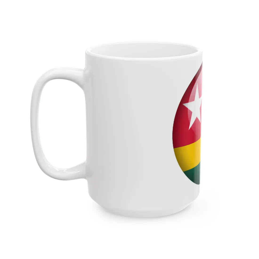 Sturdy white ceramic mugs available in 11 oz (≈330 ml) and 15 oz (≈440 ml), with a glossy finish and comfortable C-handle — microwave and dishwasher safe, and made from lead- and BPA-free materials.