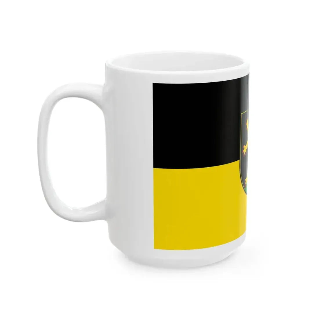 Sturdy white ceramic mugs available in 11 oz (≈330 ml) and 15 oz (≈440 ml), with a glossy finish and comfortable C-handle — microwave and dishwasher safe, and made from lead- and BPA-free materials.