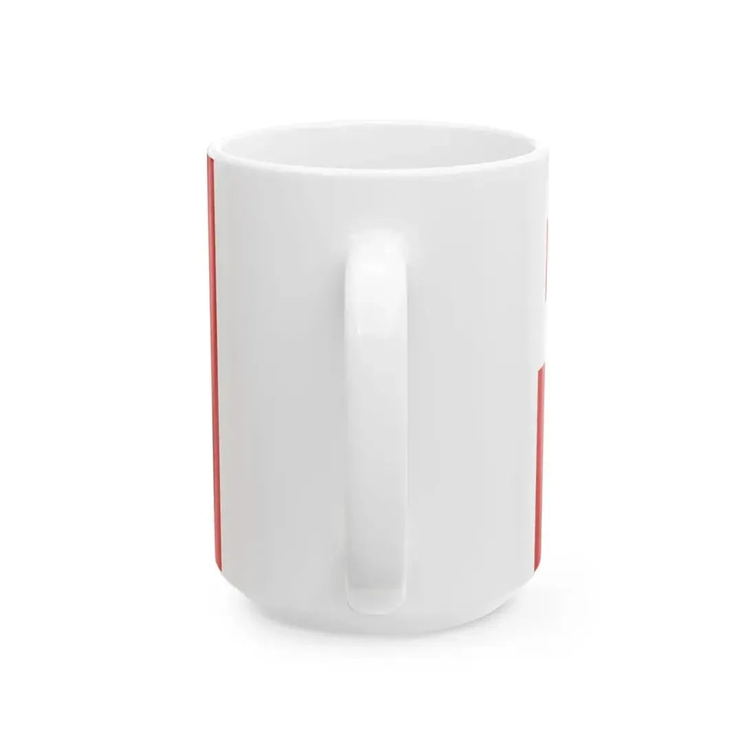 Sturdy white ceramic mugs available in 11 oz (≈330 ml) and 15 oz (≈440 ml), with a glossy finish and comfortable C-handle — microwave and dishwasher safe, and made from lead- and BPA-free materials.