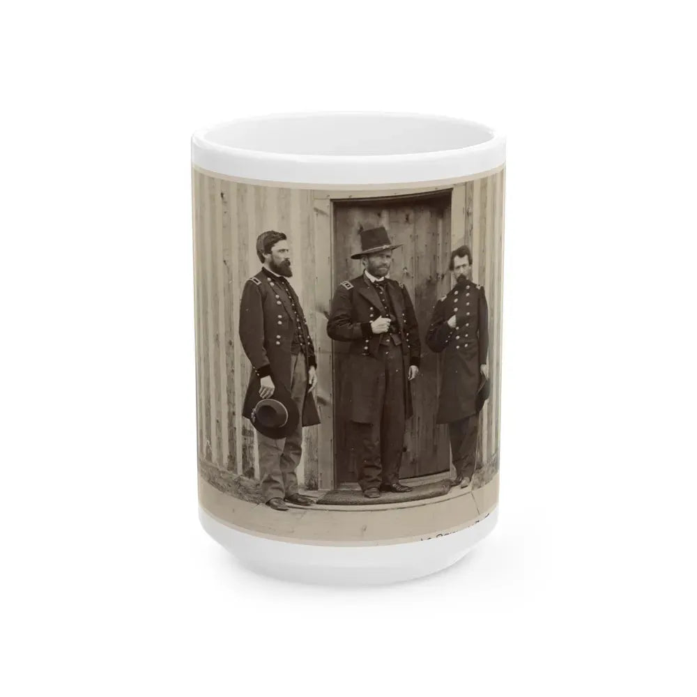 Gen. John A. Rawlins, Left, Gen. U.S. Grant, Center, And An Unidentified Officer (U.S. Civil War) White Coffee Mug
