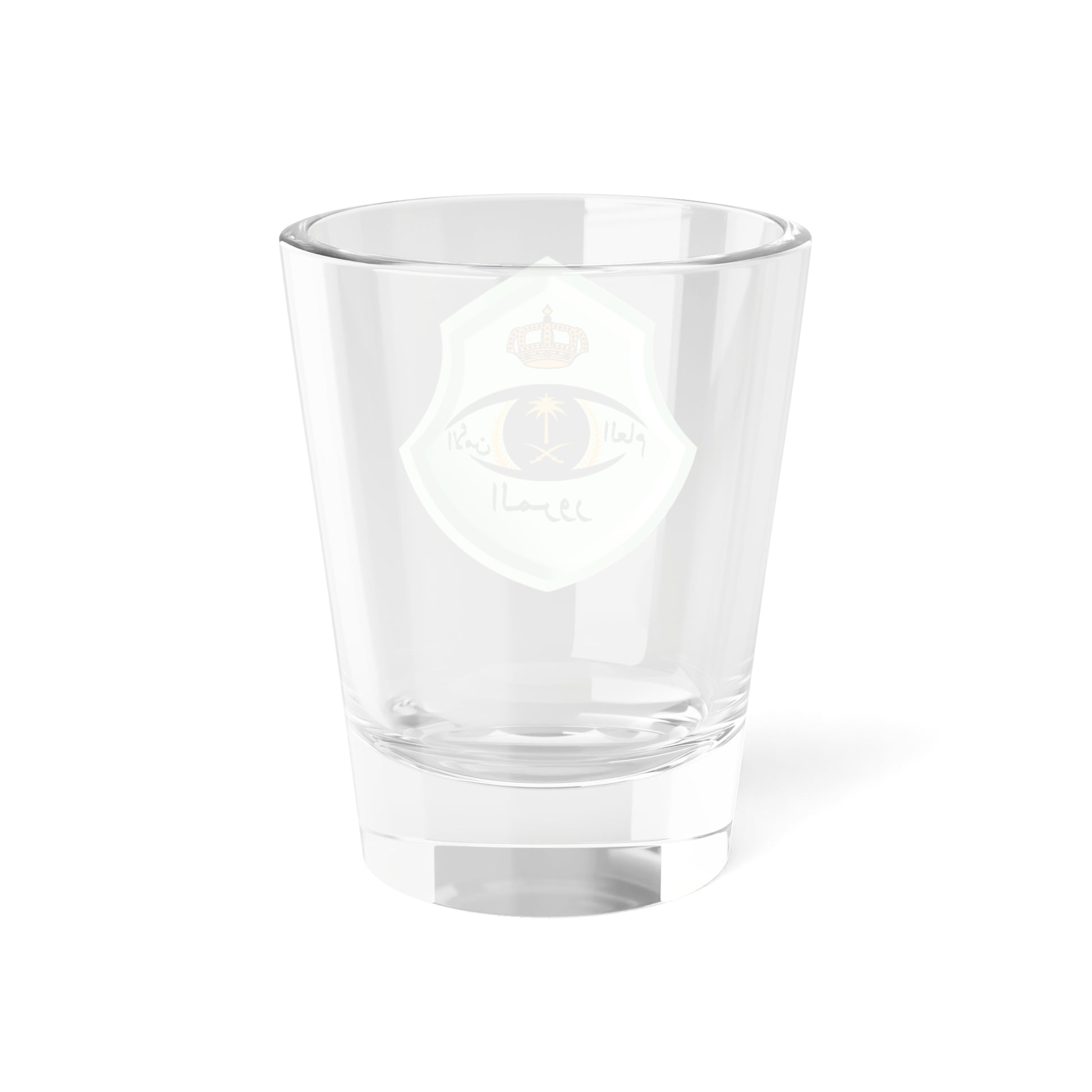 This shot glass showcases the emblem of the General Department of Traffic of Saudi Arabia, a design deeply rooted in national pride and function.