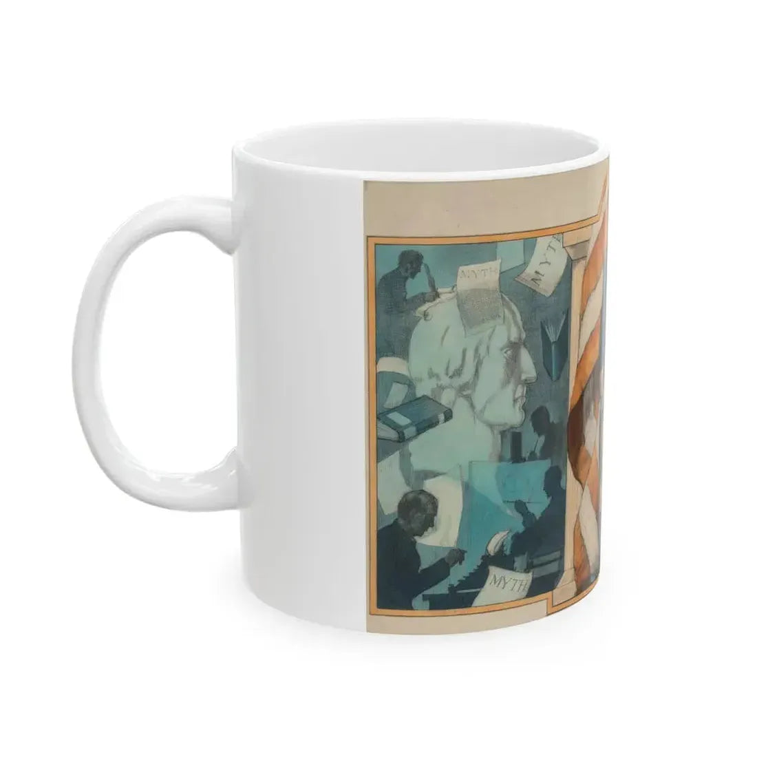 This White Coffee Mug showcases an iconic image reminiscent of the George Washington cover from the New York Herald Tribune Magazine. The design captures the historical significance and charisma of one of America's founding fathers. Ideal for history enthusiasts, this mug offers a unique opportunity to relive a piece of journalistic history while enjoying your favorite beverage. Perfect for anyone who appreciates unique and cool drinkware.