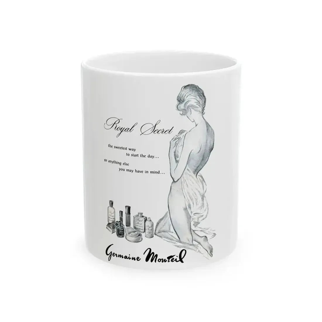 Introducing the Germaine Monteil, 1963 - White Coffee Mug. This exquisite mug pays homage to a remarkable year in French ceramic artistry, celebrating the groundbreaking work of designer Germaine Monteil. The timeless design, inspired by her seminal 1960s creations, features intricate patterns and bold geometric shapes that blend harmoniously with the minimalist white backdrop. This mug is not just a vessel for your morning brew; it's a testament to mid-century modern aesthetics that will elevate any kitchen or workspace. Perfect for anyone who appreciates unique and cool drinkware.