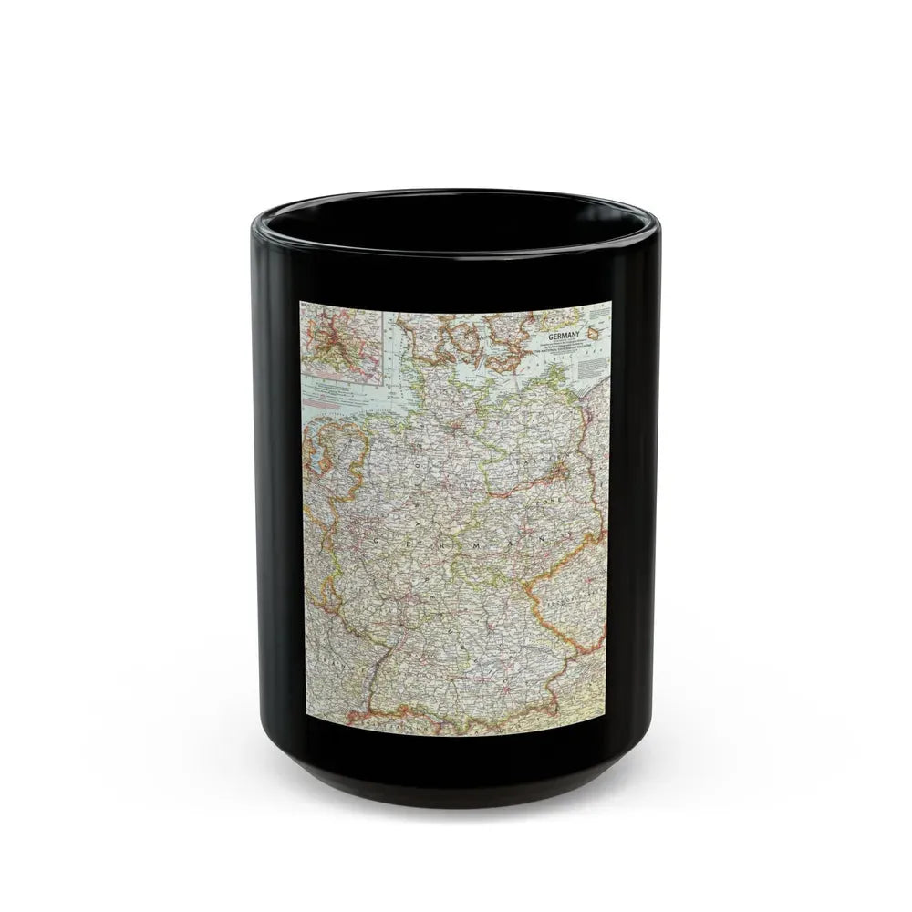Introducing the Germany (1959) Map Black Coffee Mug, a unique blend of coffee appreciation and geographical fascination. This mug showcases an intricate and detailed map of Germany from 1959, making it perfect for history enthusiasts or anyone with a deep appreciation for world cartography. The black finish gives the design a sleek, modern look that complements any kitchen or office space. Ideal for sipping your favorite brew while exploring the historical landmarks and geographical features of this fascinating country. Perfect for anyone who appreciates unique and cool drinkware.