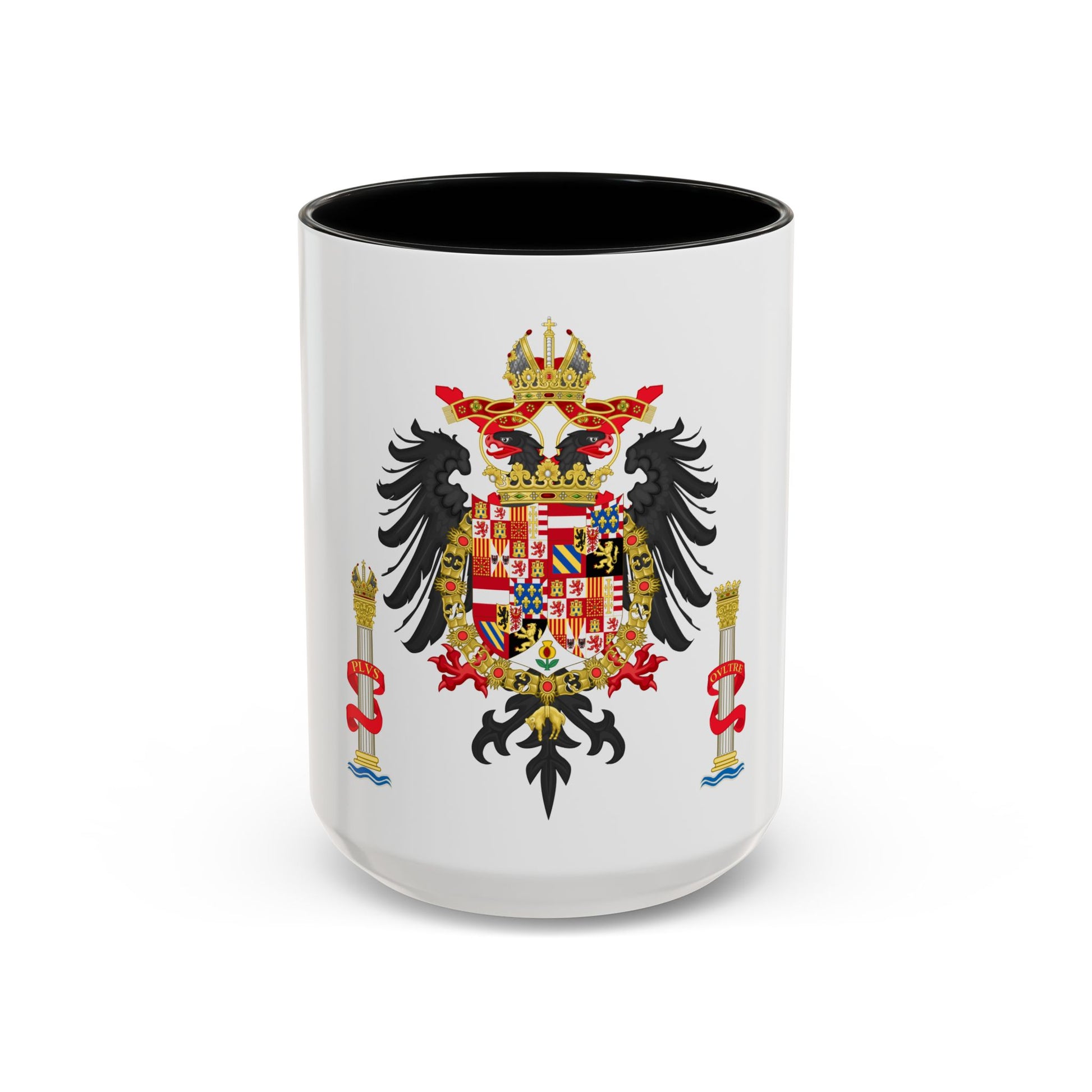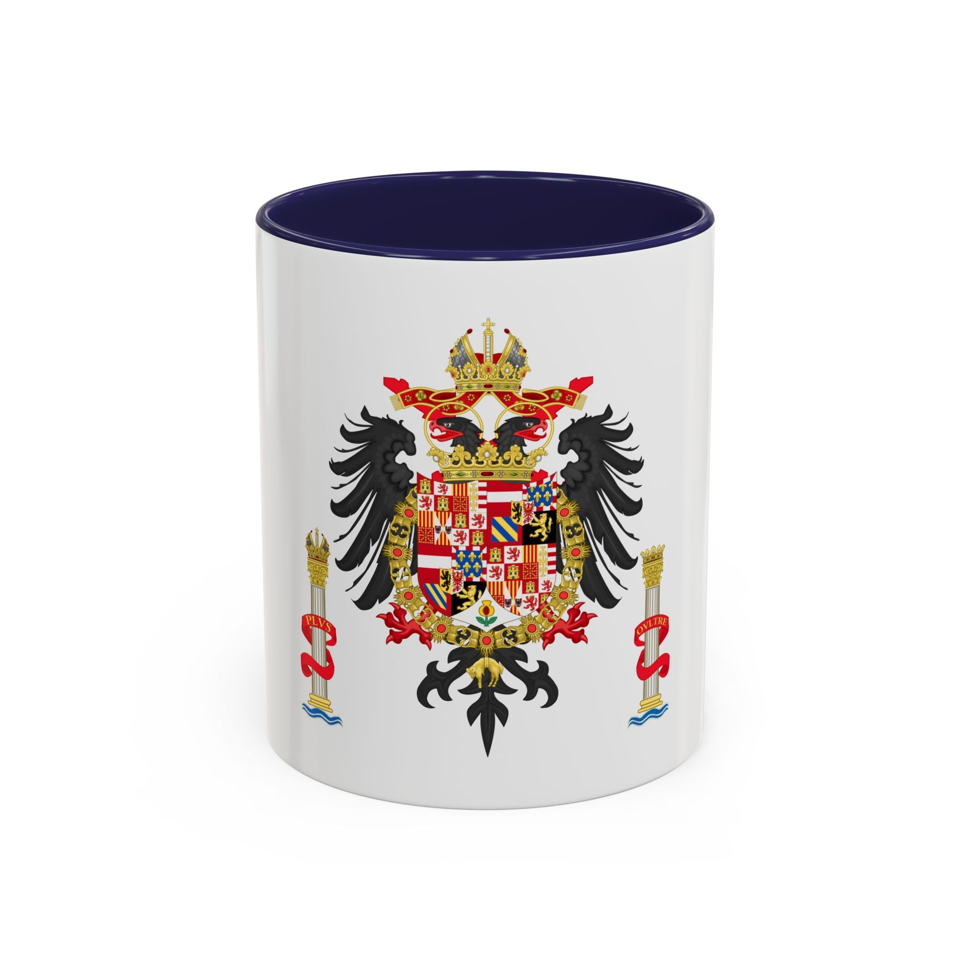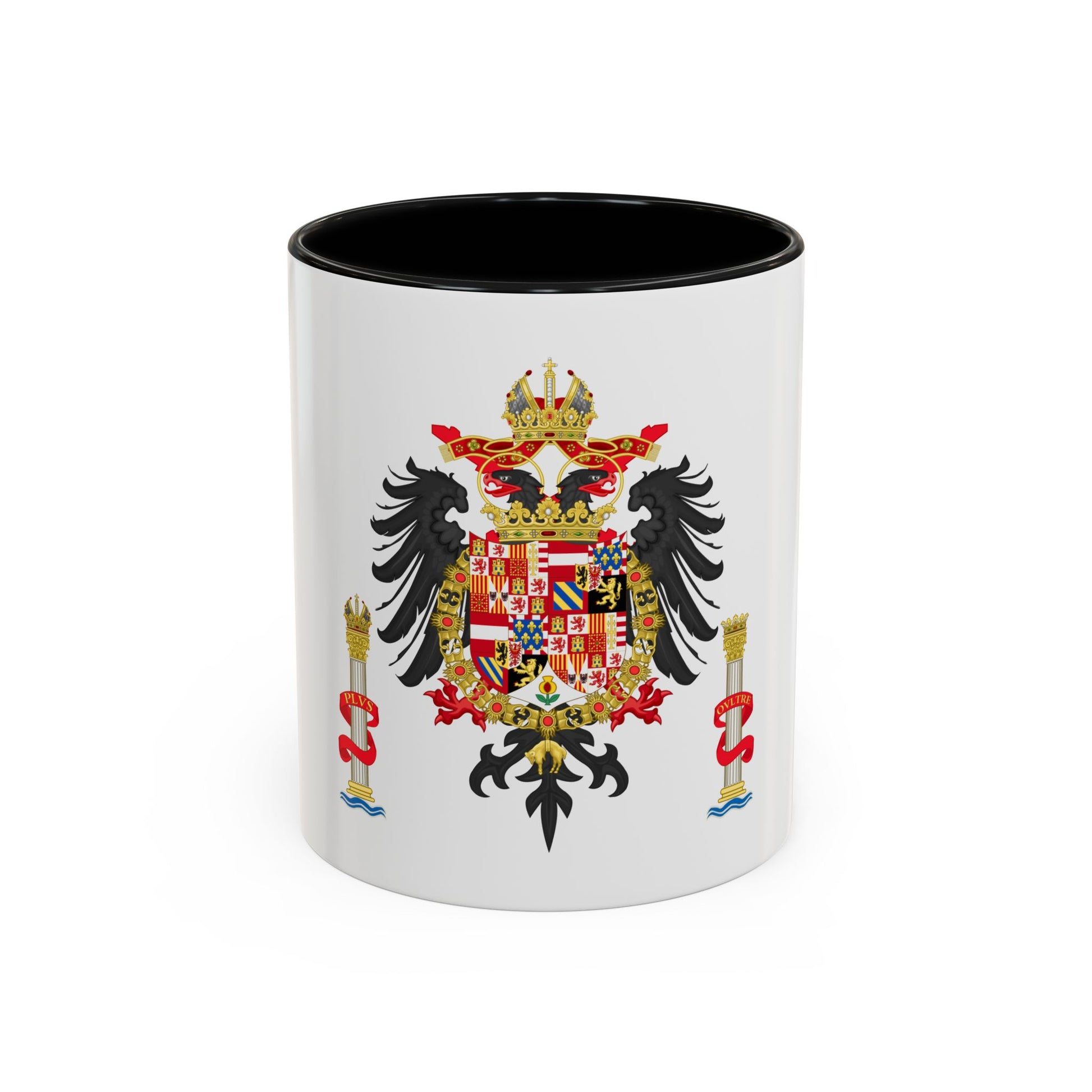 Step back in time with our Accent Coffee Mug featuring the Greater Coat of Arms of Charles V, Holy Roman Emperor and Charles I as King of Spain. This exquisite design showcases a rich tapestry of heraldry, symbolizing Charles' vast empire that spanned Europe and the Americas during the 16th century. The intricate artwork on this mug pays homage to one of history's most powerful monarchs, making it a fascinating conversation starter for history buffs and art enthusiasts alike.