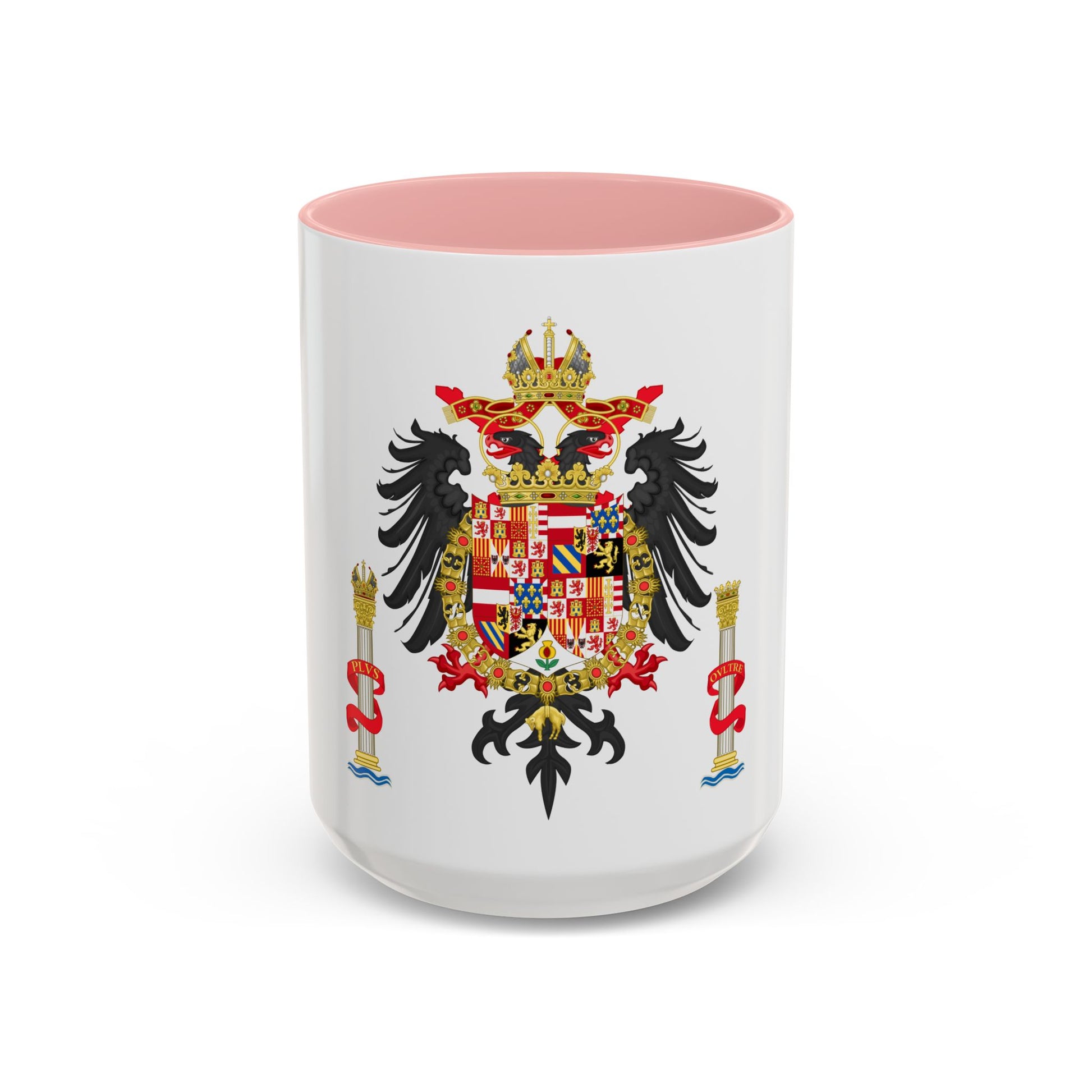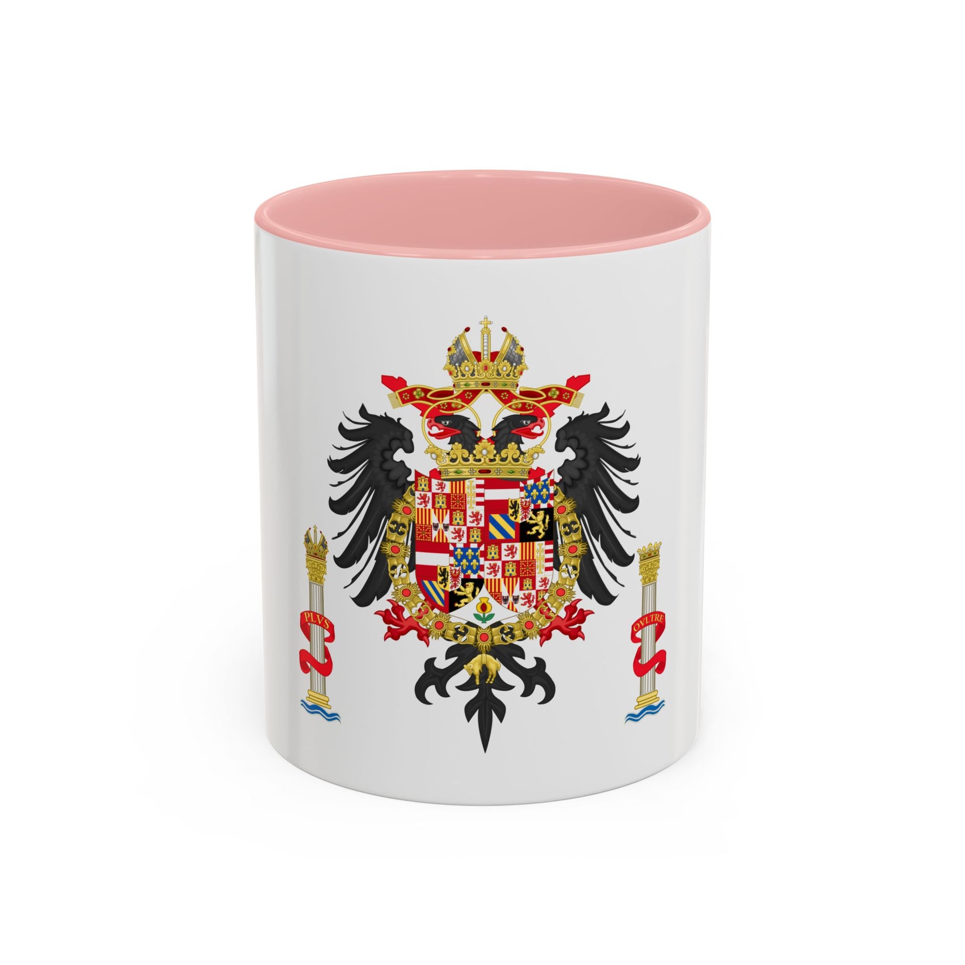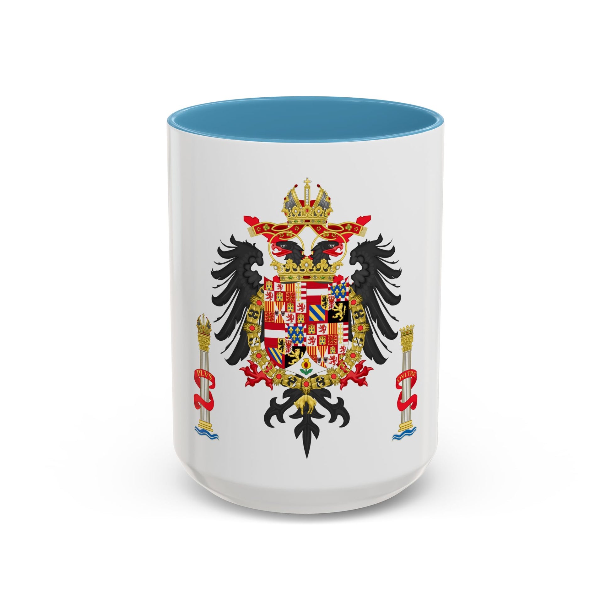 Step back in time with our Accent Coffee Mug featuring the Greater Coat of Arms of Charles V, Holy Roman Emperor and Charles I as King of Spain. This exquisite design showcases a rich tapestry of heraldry, symbolizing Charles' vast empire that spanned Europe and the Americas during the 16th century. The intricate artwork on this mug pays homage to one of history's most powerful monarchs, making it a fascinating conversation starter for history buffs and art enthusiasts alike.
