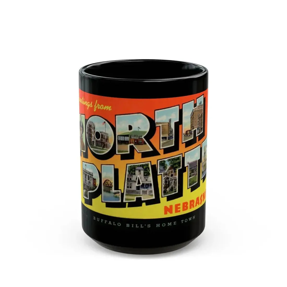 Greetings from North Platte Nebraska Buffalo Bills home town (Greeting Postcards) Black Coffee Mug