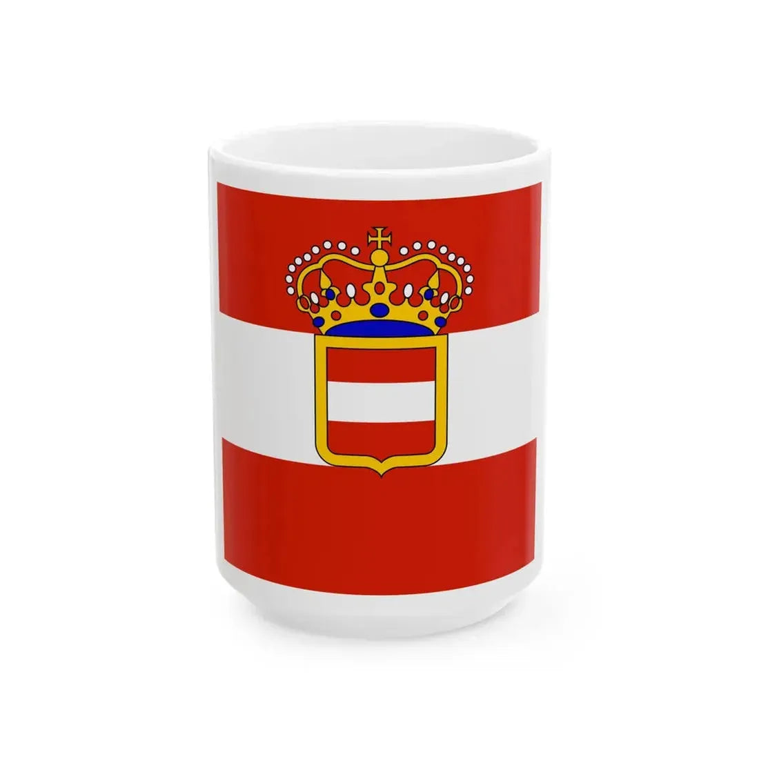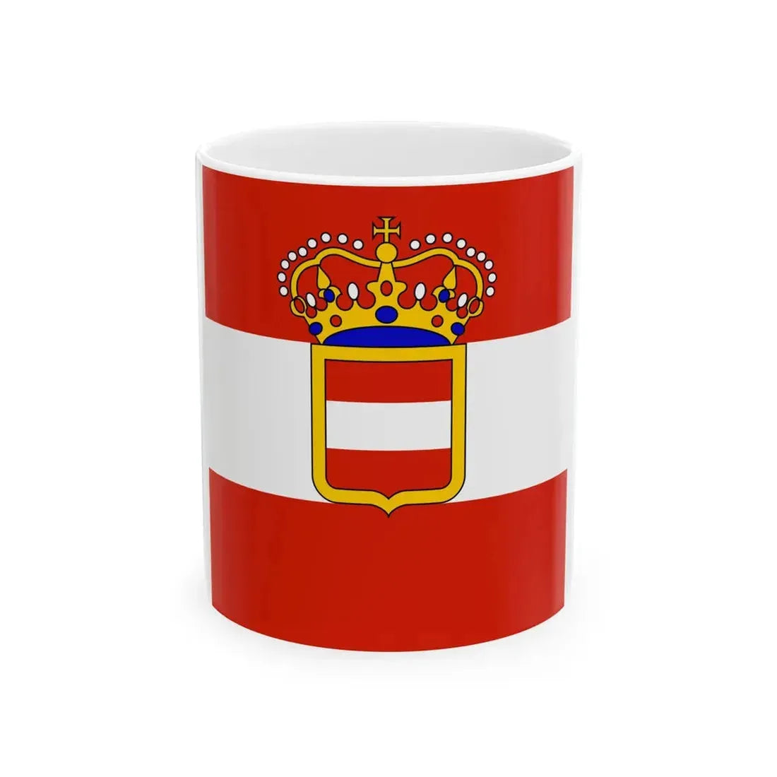 The Habsburg Admirals Flag 1828 (Austria) White Coffee Mug serves as a conversation starter in any setting, bringing together fans of maritime history, military artifacts, and unique collectibles. Its construction ensures durability, making it suitable for daily use while preserving its historic significance.