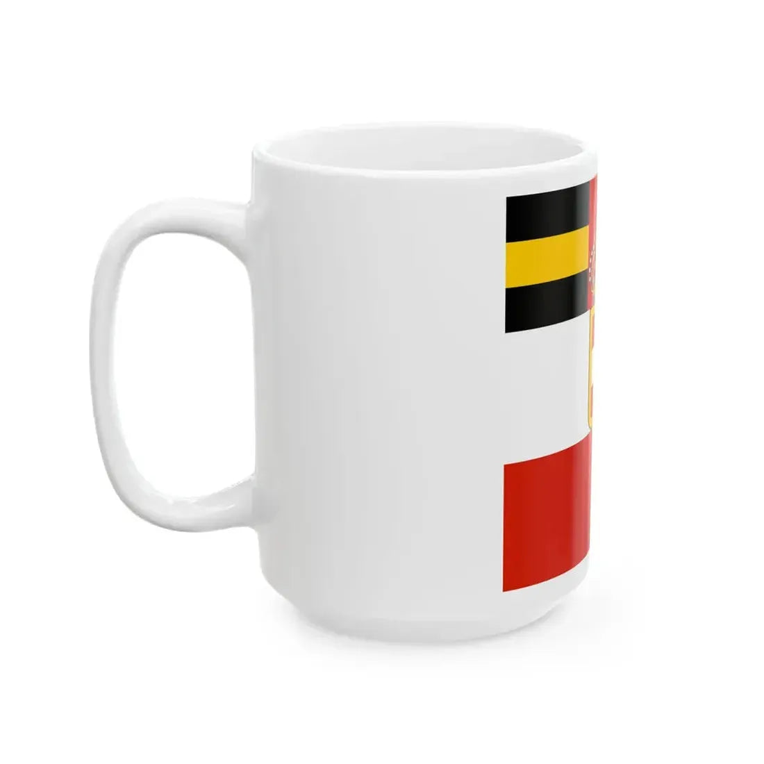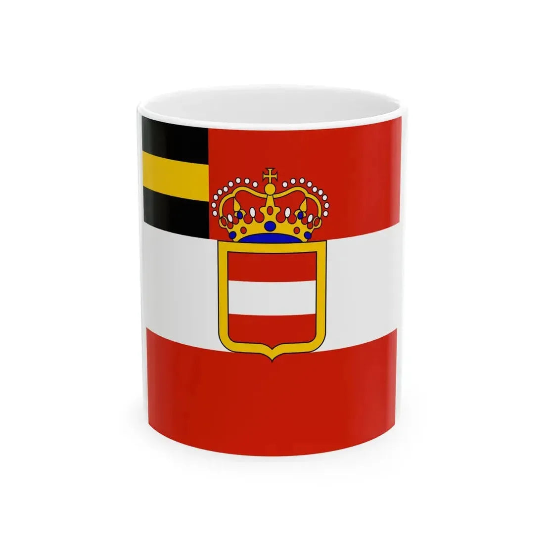 This Habsburg Admirals Flag 1853 coffee mug features an intricate design inspired by the historical flag of Austria during the reign of the Habsburg dynasty. The flag, which dates back to 1853, showcases a bold white field with the double-headed eagle emblem at its center. This emblem symbolizes the dual powers held by the monarch, reminiscent of the rich history and might of the Austrian empire. History enthusiasts, especially those fascinated by European dynasties, will find this unique coffee mug a perfect addition to their collection.