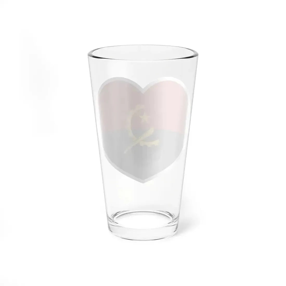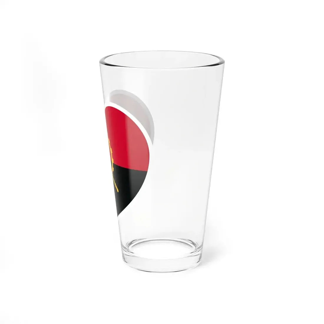 The Heart Flag of Angola design on a 16oz pint glass is a representation of Angolan national pride, embodying the unique cultural heritage of this African nation. Originally adopted in 2002, the heart flag symbolizes the unity, love, and resilience of the Angolan people after years of struggle. The design features two intertwined green hearts on a red background, symbolizing Angola's two provinces, Cabinda and the mainland, united as one nation.