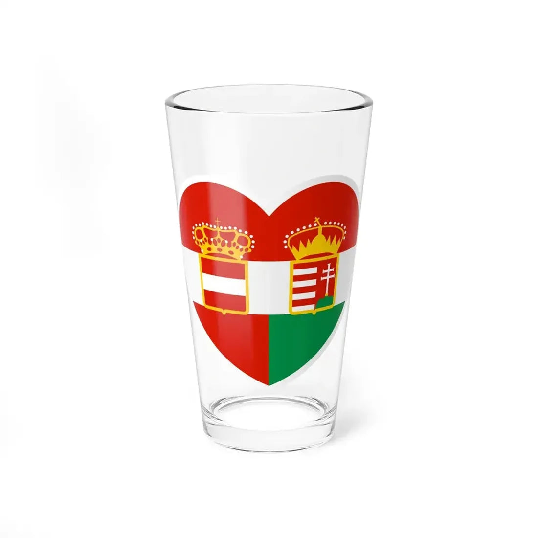 This Heart Flag of Austria-Hungary Pint Glass showcases a unique blend of history and design. The artwork on this glass reflects the iconic heart shape shield that was used in the Austro-Hungarian flag, symbolizing unity and protection during the dual monarchy's reign from 1867 to 1918. This drinkware piece is an excellent conversation starter for history enthusiasts or anyone with a keen interest in European political history.