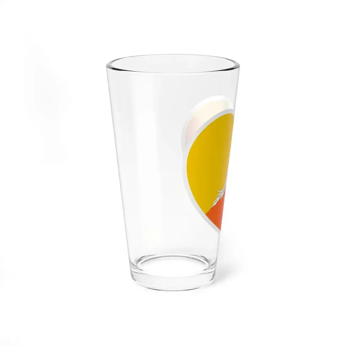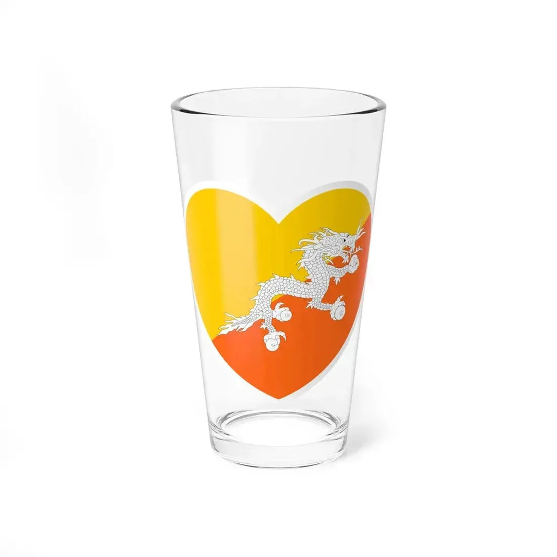 Experience a piece of cultural heritage with every sip from this Heart Flag of Bhutan Pint Glass, crafted in a 16oz size for your convenience. The design showcases the distinctive, intricate heart-shaped flag of Bhutan, symbolizing the country's unique identity and love for peace and harmony. This glass is perfect for anyone who appreciates unique and cool drinkware, as well as those with an affinity for Bhutanese culture or history.