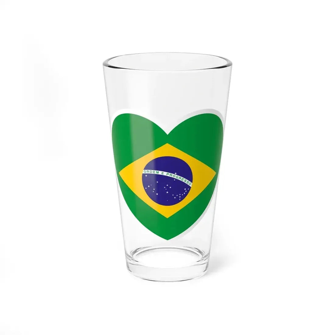 This Heart Flag of Brazil Pint Glass presents an exclusive fusion of patriotism and beverage culture, making it a striking addition to any gathering or collection. The design showcases the iconic green-and-yellow flag, metamorphosed into an emotive heart shape that symbolizes love for the country. The heart form serves as a heartwarming reminder of the Brazilian spirit and its deep connection with football, carnival, and diverse culture. This 16oz glass is ideal for anyone who appreciates unique and cool drinkware, especially those with a soft spot for Brazil.