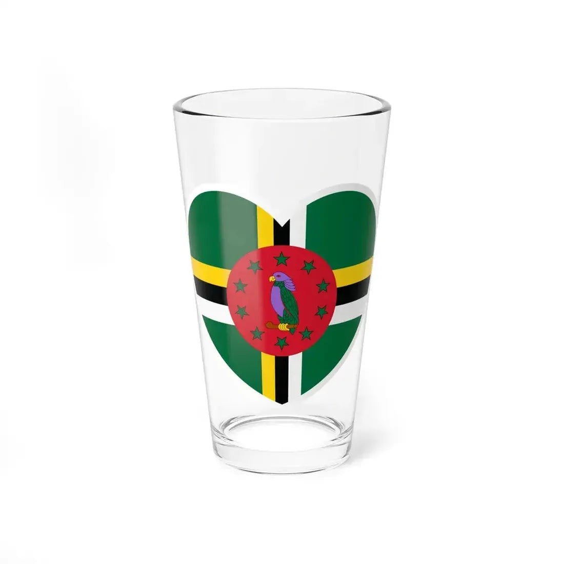 Enjoy a refreshing drink while celebrating the beauty, strength, and resilience of Dominica with this stylish Heart Flag of Dominica pint glass. This glass is a wonderful way to show your support for the Nature Island and its people, making it perfect for anyone who appreciates unique and cool drinkware.