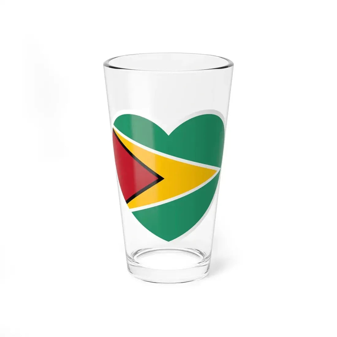 Experience the vibrant culture of Guyana with this Heart Flag of Guyana-themed Pint Glass, a unique addition to your drinkware collection. This 16oz glass showcases the national symbol of Guyana, a heart-shaped map of the country. The design is an ode to the South American nation's rich history and its warm, welcoming spirit. Perfect for anyone who appreciates unique and cool drinkware, this Heart Flag of Guyana Pint Glass is a great conversation starter at home or while socializing with friends.