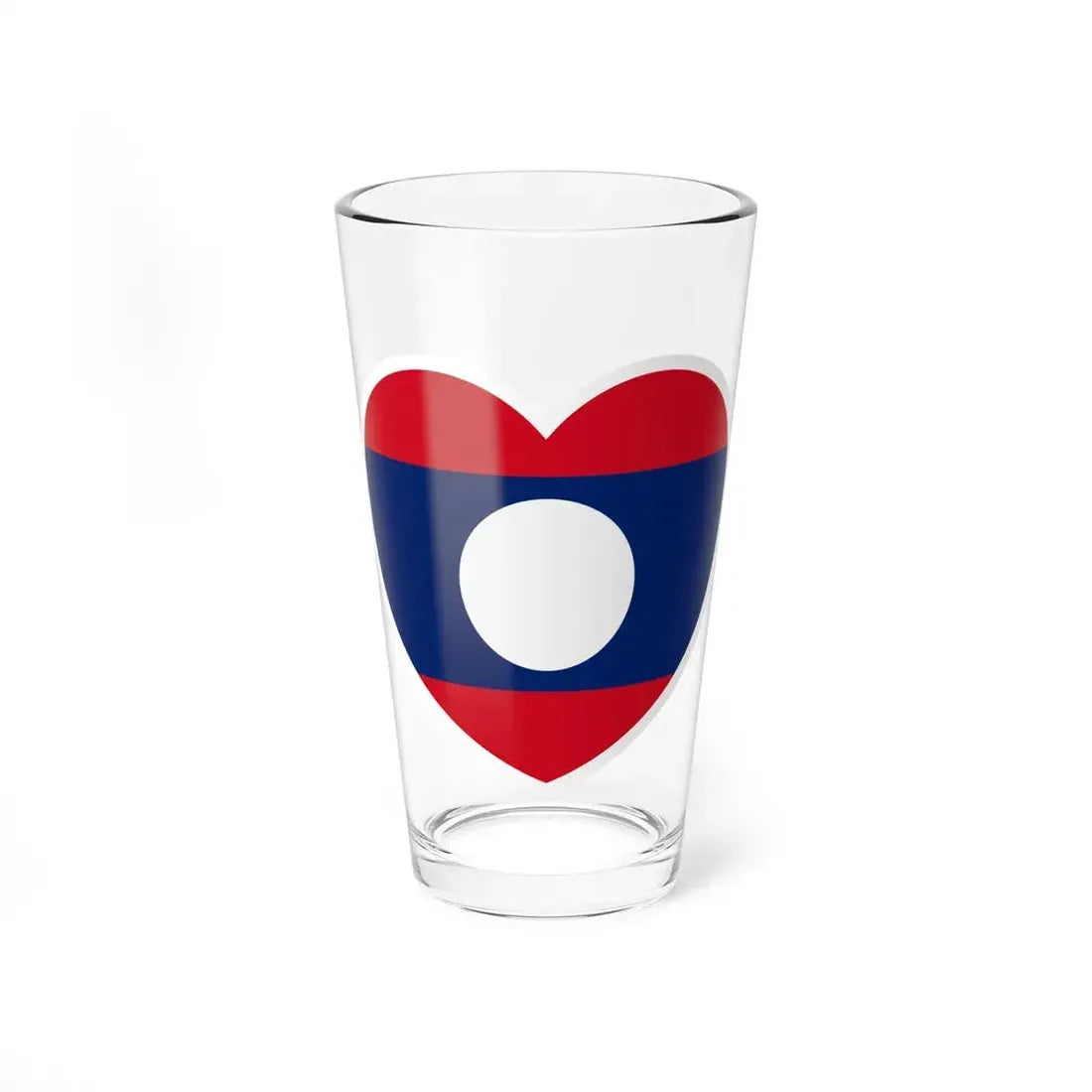 The Heart Flag of Laos Pint Glass serves as a conversation starter, allowing you to share stories about the rich history and traditions of this beautiful country. Whether used at home, in a bar, or during gatherings, this glass adds a touch of exotic charm to your collection. Perfect for anyone who appreciates unique and cool drinkware.