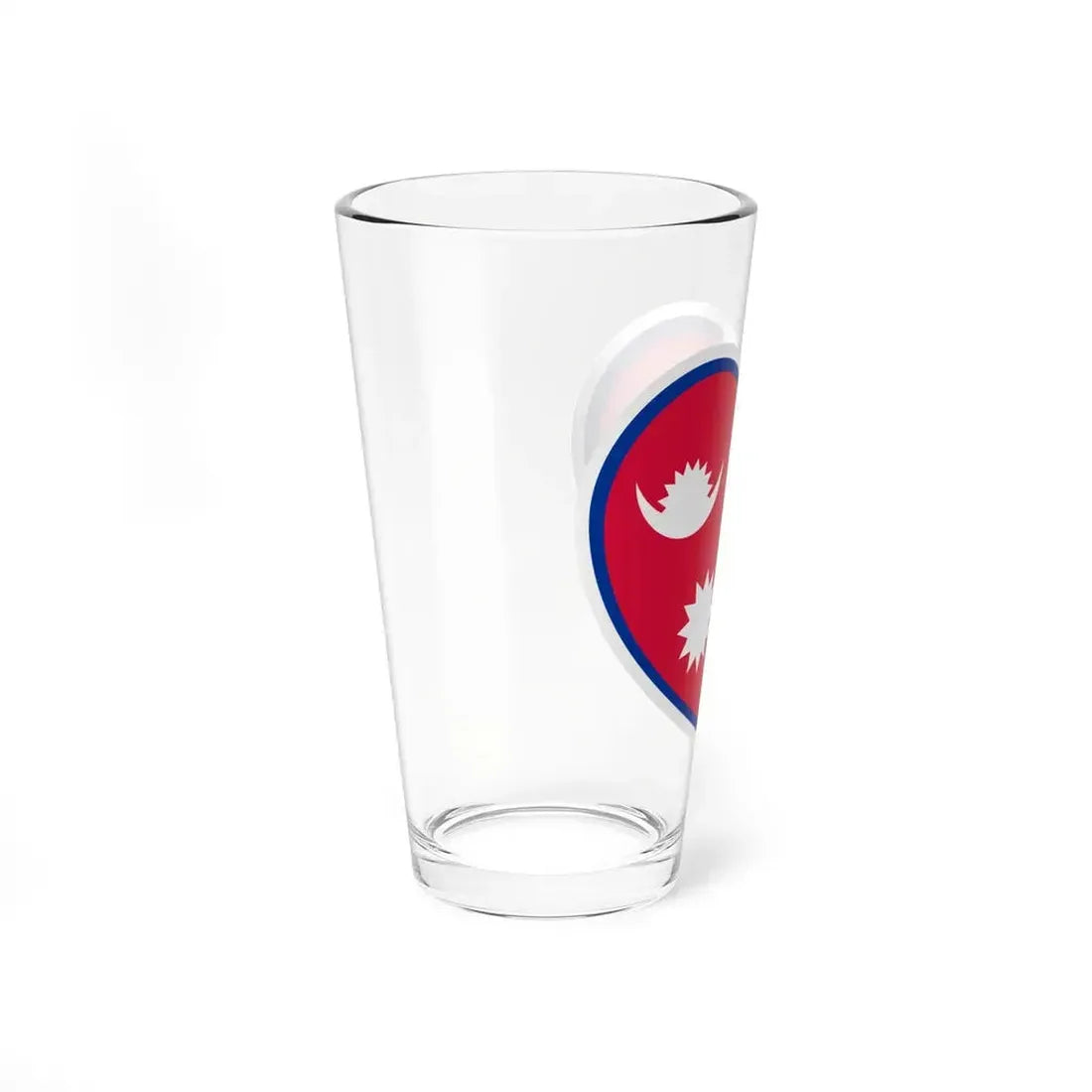 The Heart Flag of Nepal - Pint Glass 16oz is crafted with attention to detail, ensuring the flag's iconic red color stands out against the clear glass background. This glass adds a touch of global flair to any beverage occasion, making it perfect for anyone who appreciates unique and cool drinkware.