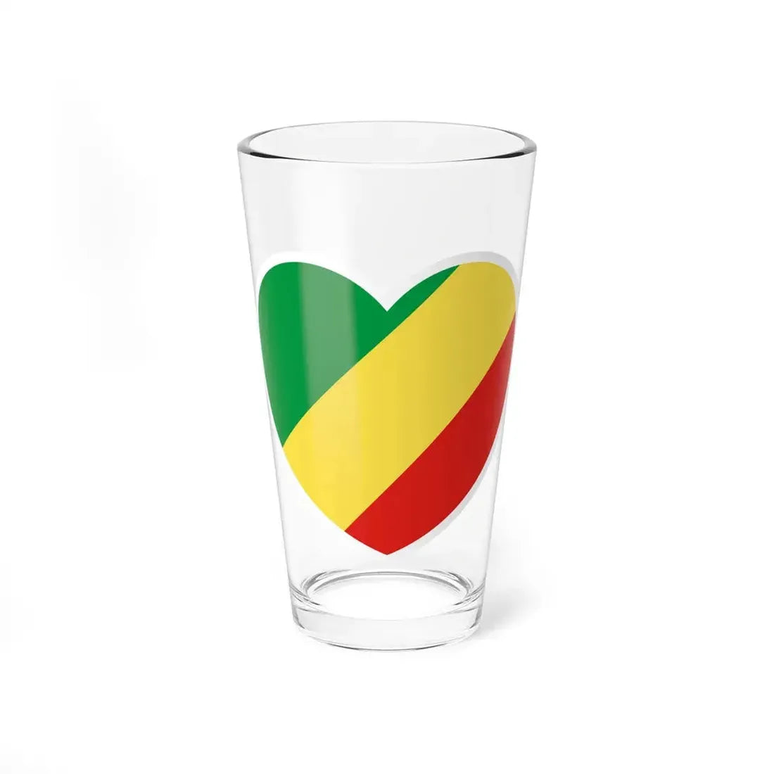 The Heart Flag of the Republic of the Congo pint glass makes a thoughtful gift for travelers, expatriates, or anyone interested in Africa's political landscape. Its sturdy construction ensures durability for daily use while displaying this iconic design with pride. Enjoy your favorite beverage in style as you celebrate and share the symbolism behind this heartfelt flag design.