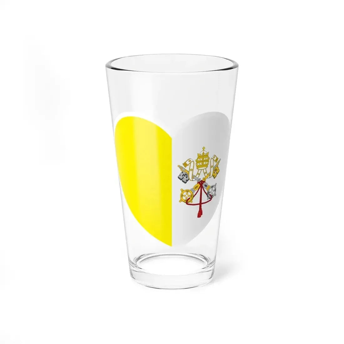 The Heart Flag of Vatican City is a unique design that symbolizes the spiritual heart of one of the world's most iconic cities. This pint glass, holding 16oz, showcases this distinctive flag in a creative way, making it perfect for anyone who appreciates unique and cool drinkware. The Heart Flag is a significant emblem, as it represents the Vatican City State, an ecclesiastical sovereign city-state enclaved within Rome, Italy. It symbolizes unity, love, and devotion, making it a captivating choice for those with a deep interest in history, art, or religious iconography.