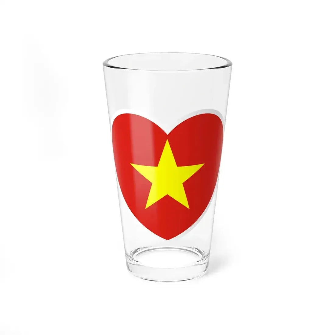 Crafted with attention to detail, this glass is a subtle yet striking addition to any barware collection. The heart flag design offers a tasteful and artistic representation of national pride, making it a perfect conversation starter at gatherings or parties. Whether you're sipping on your favorite beverage or displaying the glass as decor, this Vietnam Heart Flag Pint Glass is sure to capture attention and spark interest.