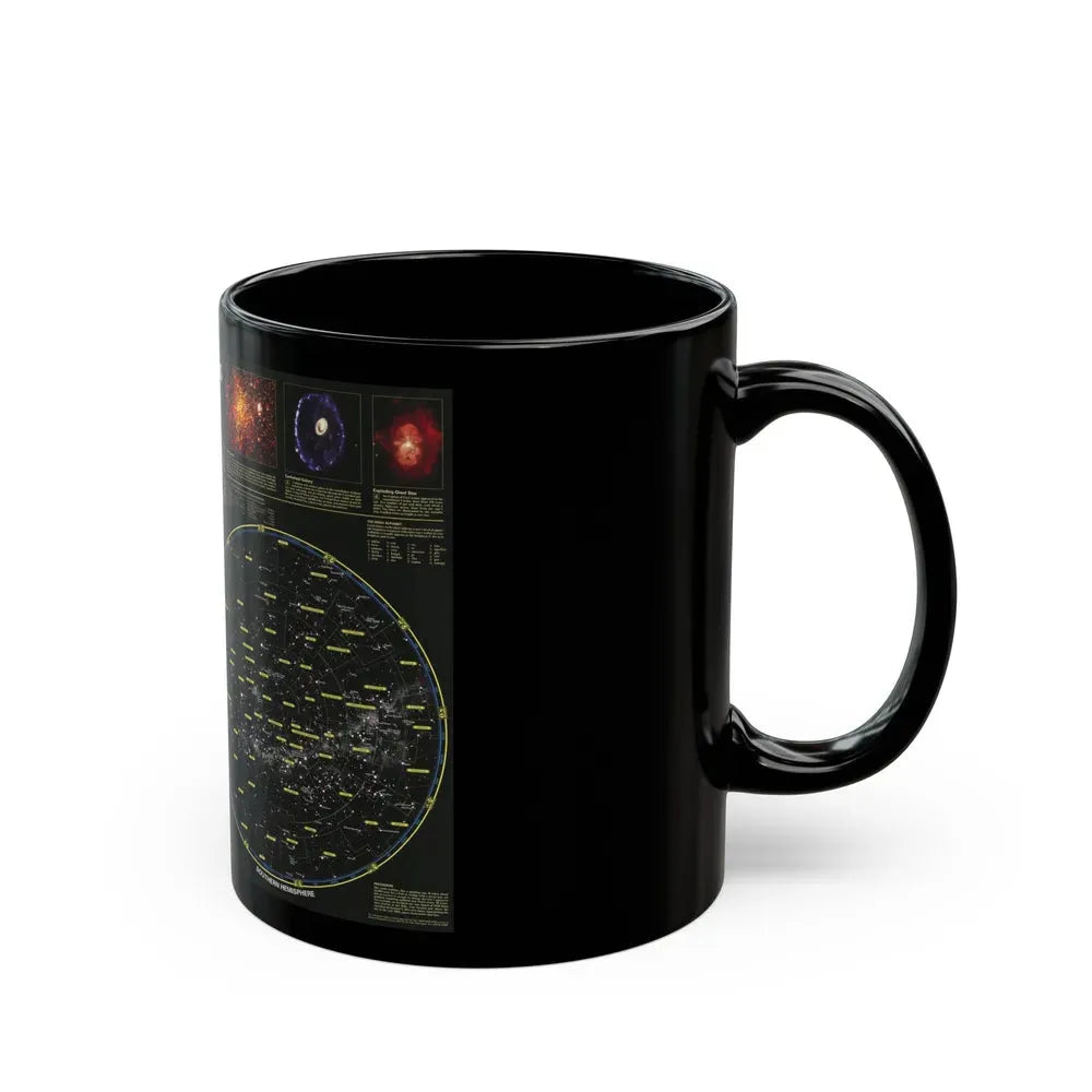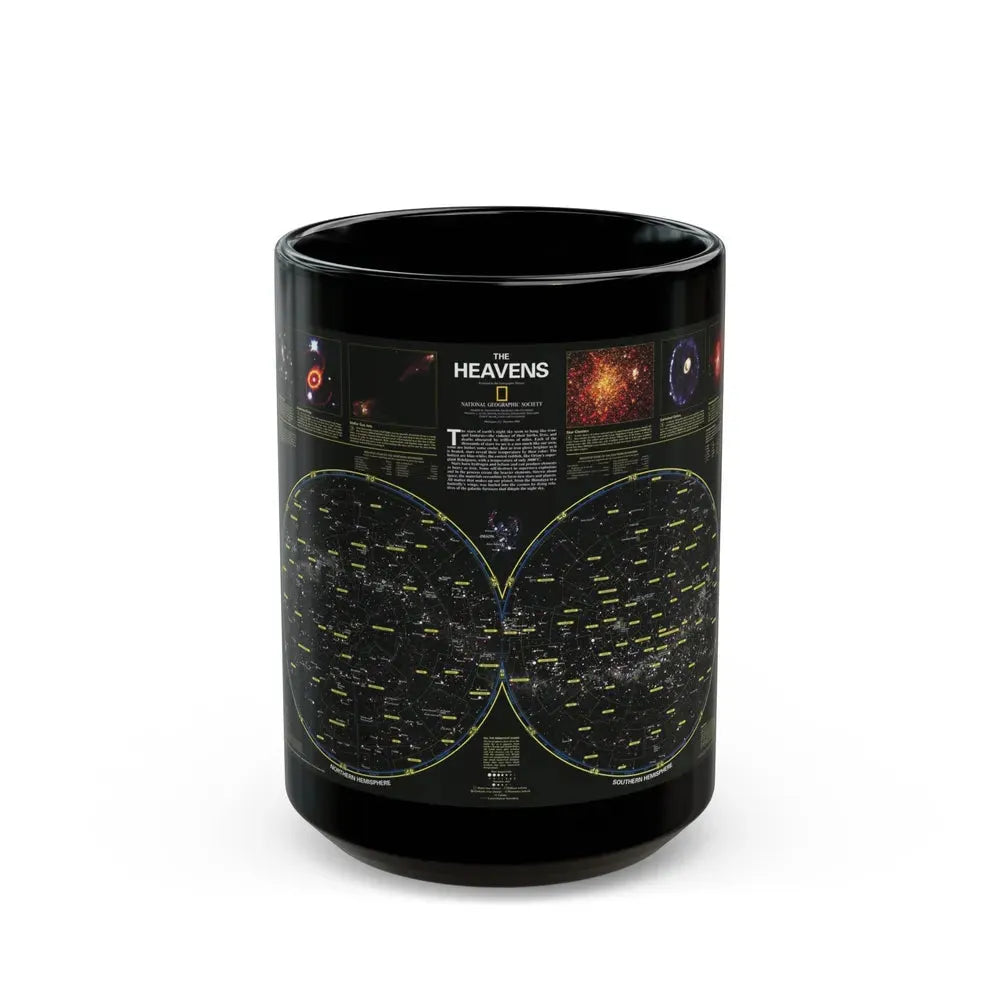 The "Heavens, The (1995)" Black Coffee Mug is a unique piece of drinkware that showcases an intriguing celestial map design. This mug takes inspiration from the old world maps that attempted to depict the known universe in the pre-telescopic era. The design features constellations, planets, and other celestial bodies as they were understood during the mid-1900s, providing a glimpse into the past and sparking curiosity about the cosmos.