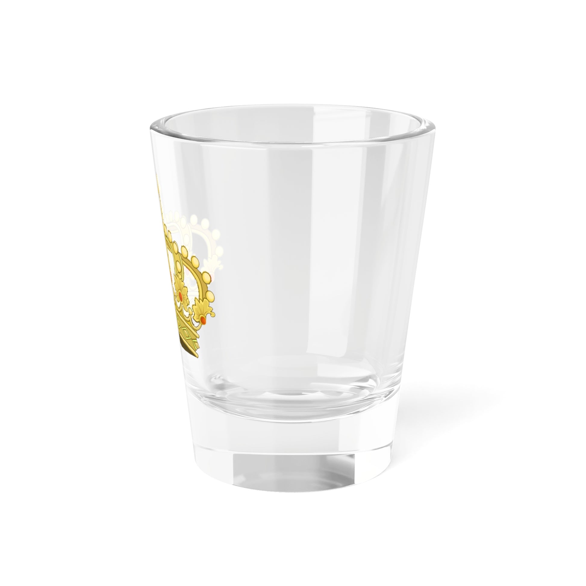 This shot glass design prominently features the Heraldic Coronet of Princes and Princesses of the Two Sicilies, a symbol rich in historical significance and heraldic detail.