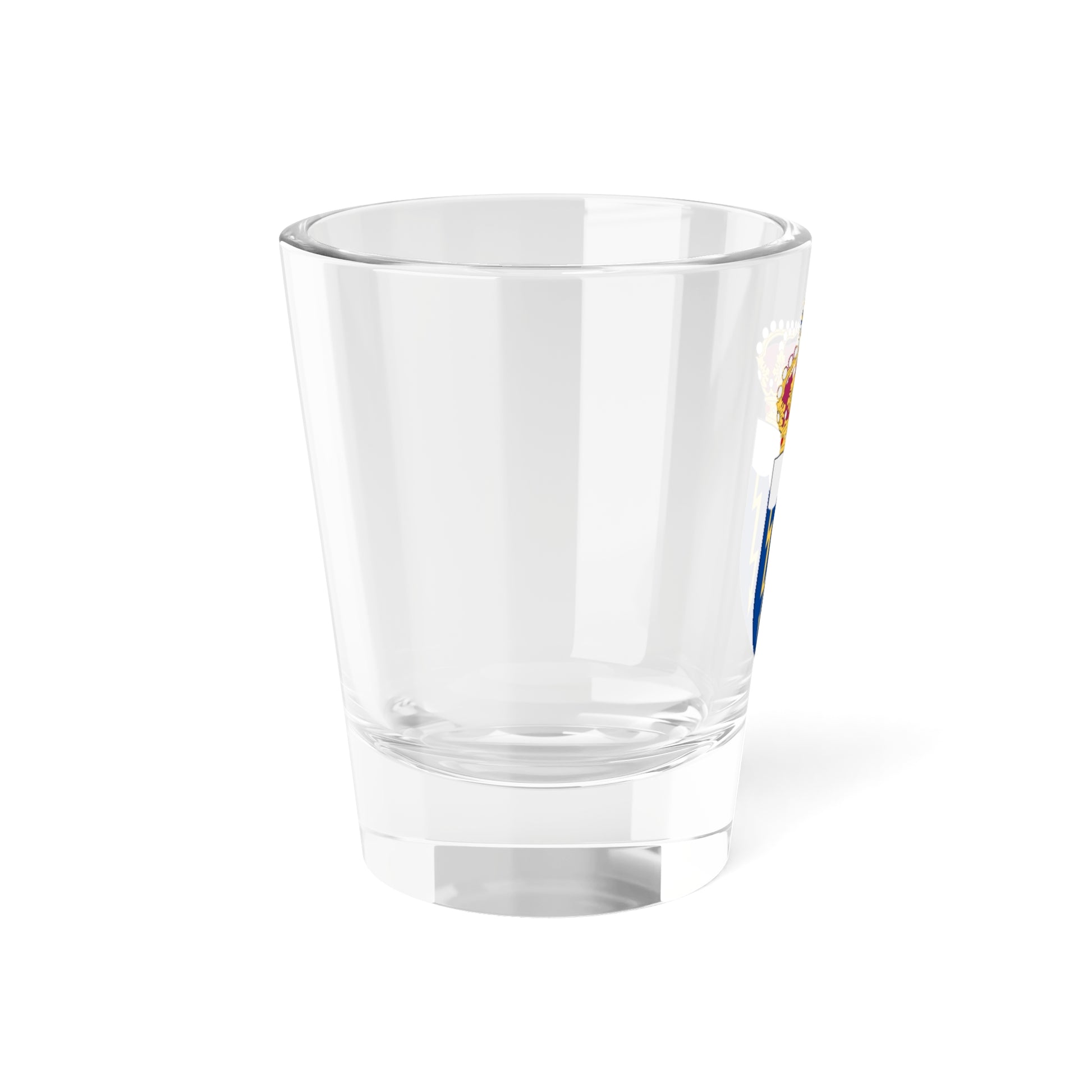 This shot glass showcases the distinguished coat of arms (vapen) of the Swedish Navy patrol boat, HMS Tordön. The design is a striking display of heraldic artistry, rich with symbolic meaning.