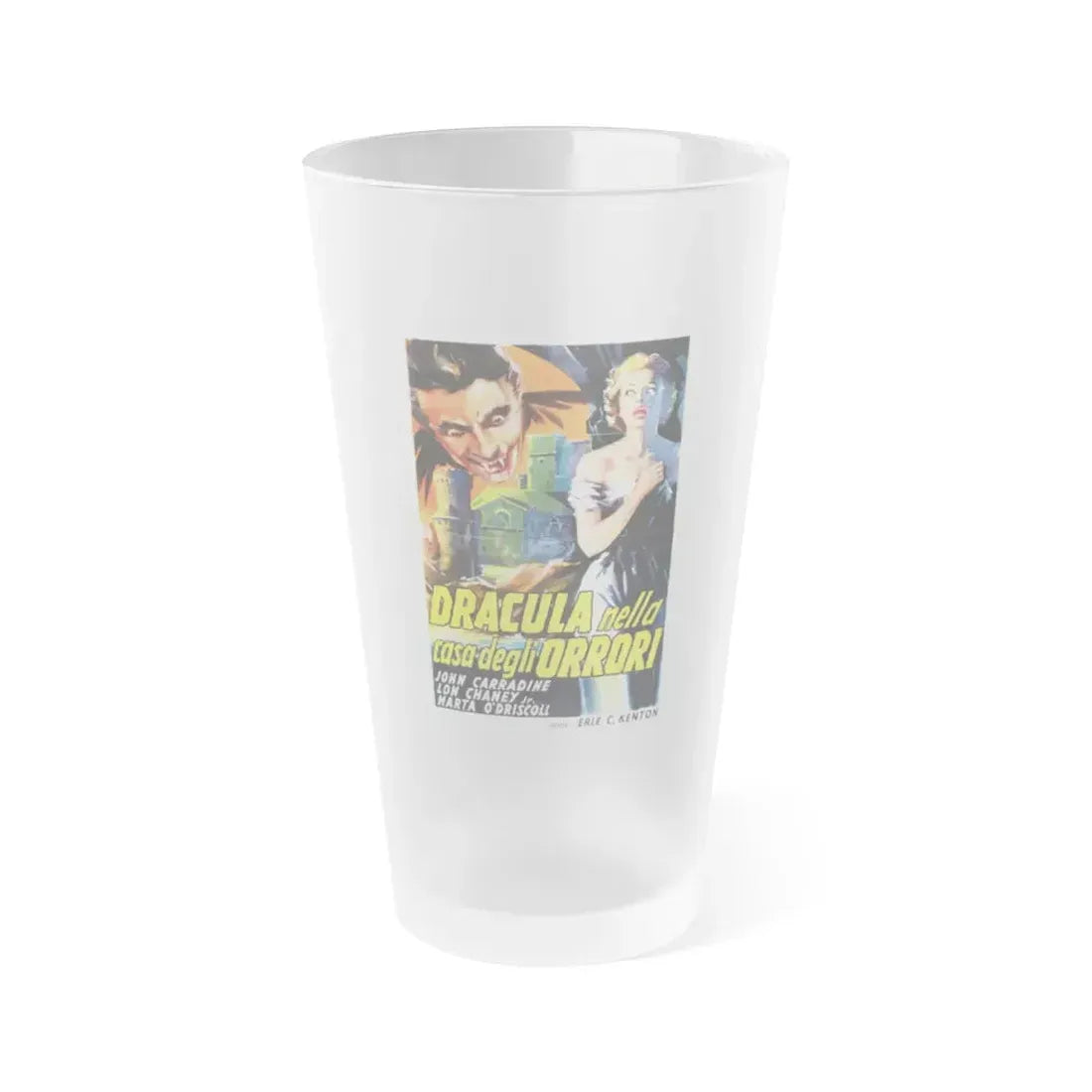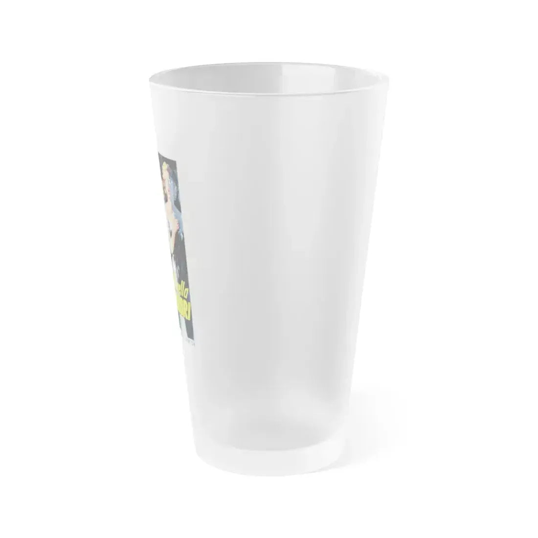 Frosted pint glass (16 oz / โ0.47 L) with a soft matte finish and semi-translucent, one-sided print. Tough enough for bar and restaurant use, dishwasher safe, and BPA-free โ a modern take on classic pintware.