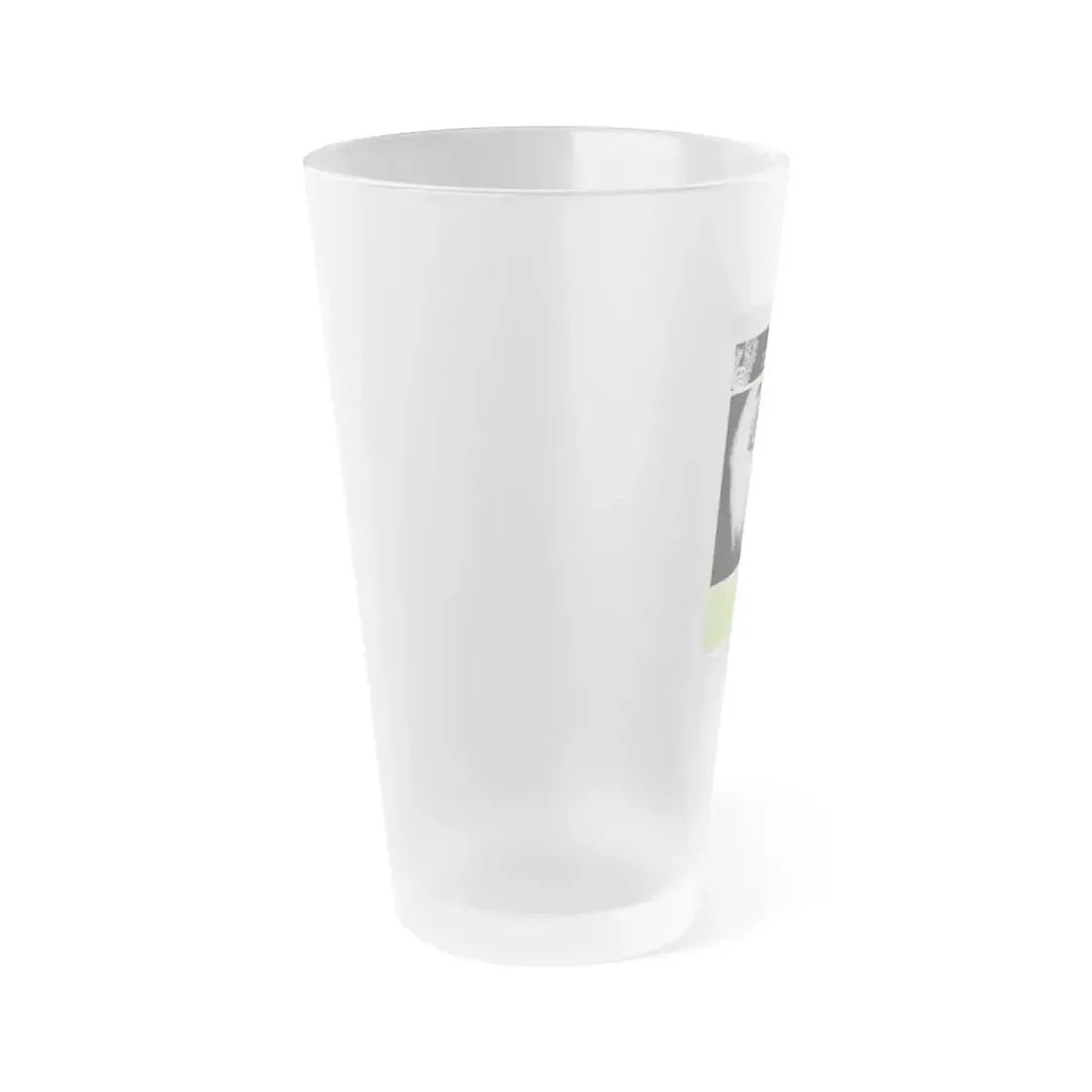 Frosted pint glass (16 oz / ≈0.47 L) with a soft matte finish and semi-translucent, one-sided print. Tough enough for bar and restaurant use, dishwasher safe, and BPA-free — a modern take on classic pintware.