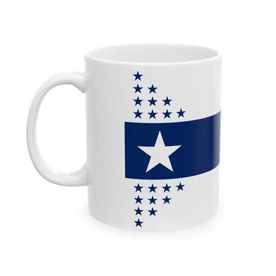 The Illinois Centennial Flag (United States) White Coffee Mug is a thoughtful tribute to the rich history of the state of Illinois, celebrating its first 100 years. This unique drinkware showcases an intricate replica of the Illinois Centennial Flag, designed in 1918 by Frank T. Begg to commemorate the centennial anniversary of Illinois' admission into the Union. The flag features a large central star symbolizing statehood, surrounded by 23 smaller stars representing the original 13 colonies and the subsequent 10 states that joined the Union before Illinois. A timeless symbol of Illinois' history, this design is perfect for anyone who appreciates unique and cool drinkware.
