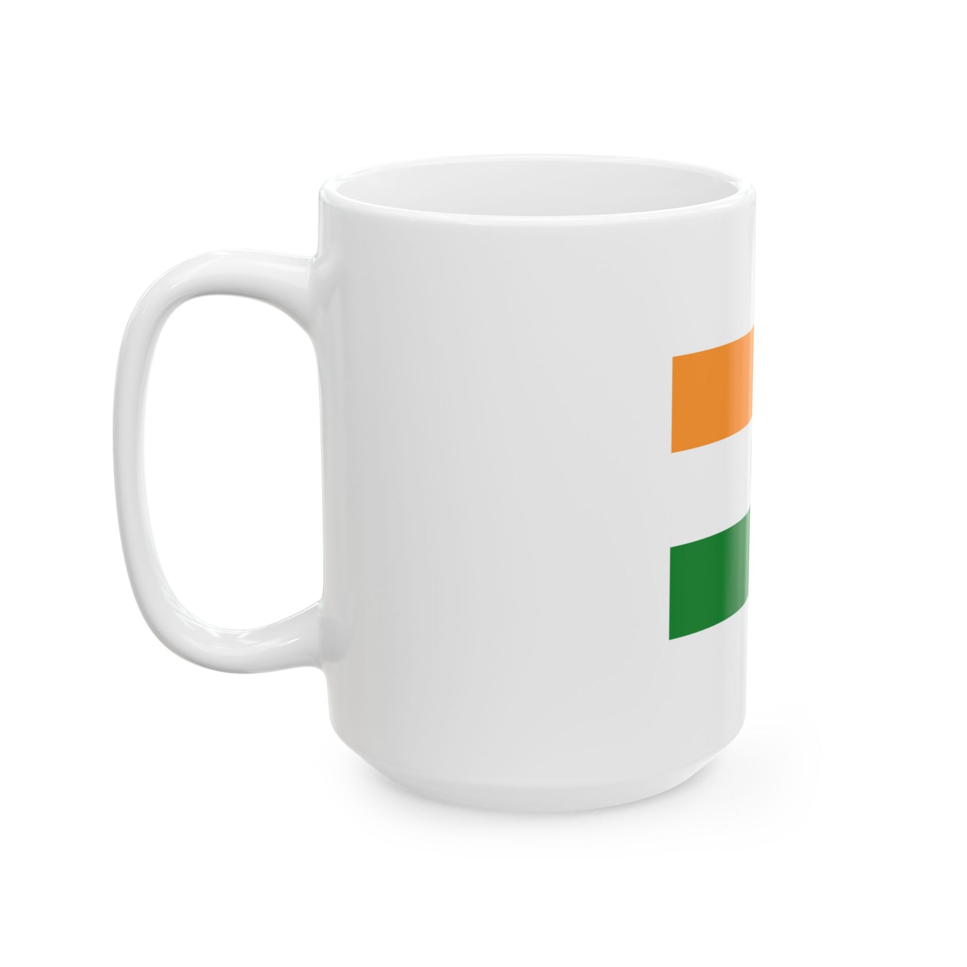 Sturdy white ceramic mugs available in 11 oz (≈330 ml) and 15 oz (≈440 ml), with a glossy finish and comfortable C-handle — microwave and dishwasher safe, and made from lead- and BPA-free materials.