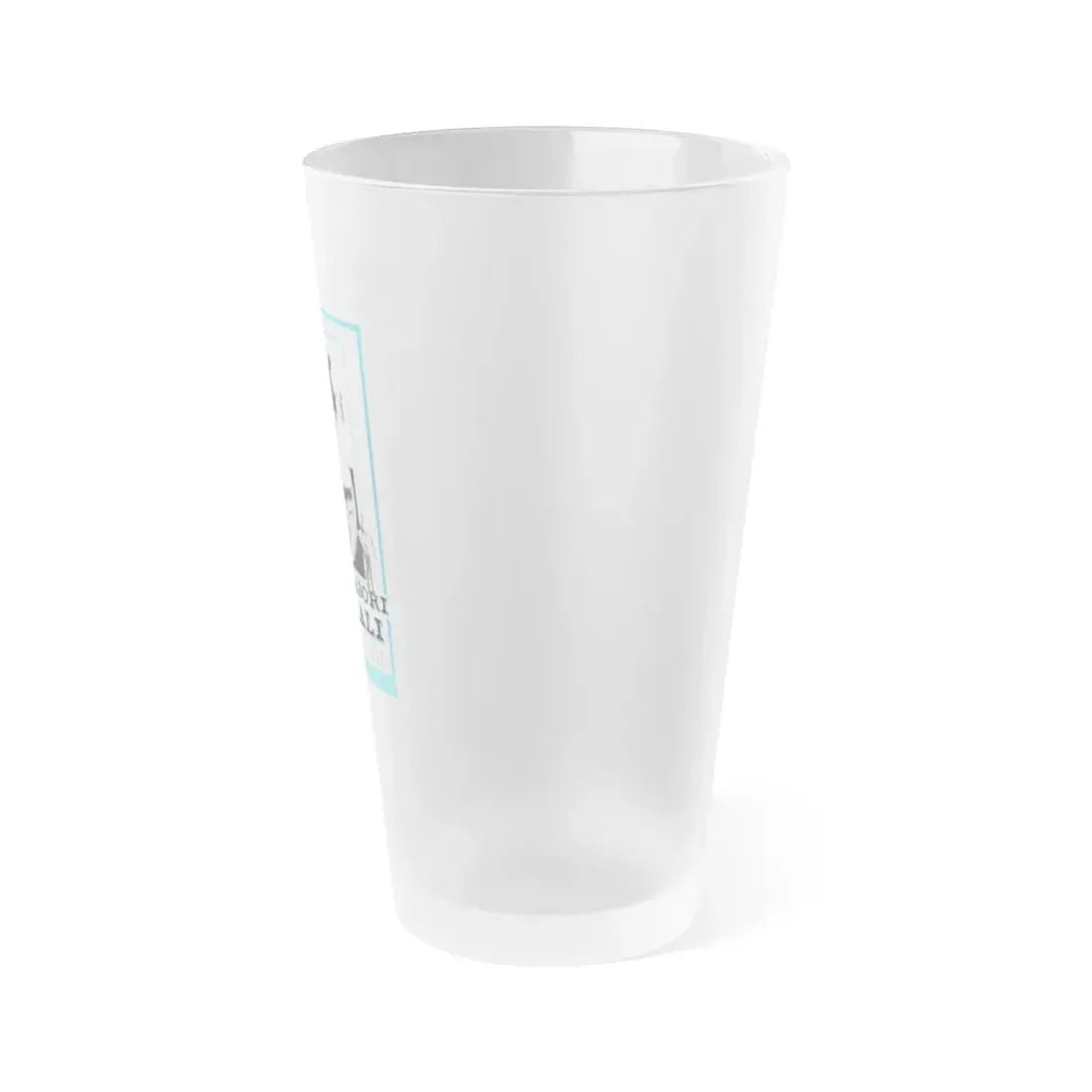 Frosted pint glass (16 oz / ≈0.47 L) with a soft matte finish and semi-translucent, one-sided print. Tough enough for bar and restaurant use, dishwasher safe, and BPA-free — a modern take on classic pintware.