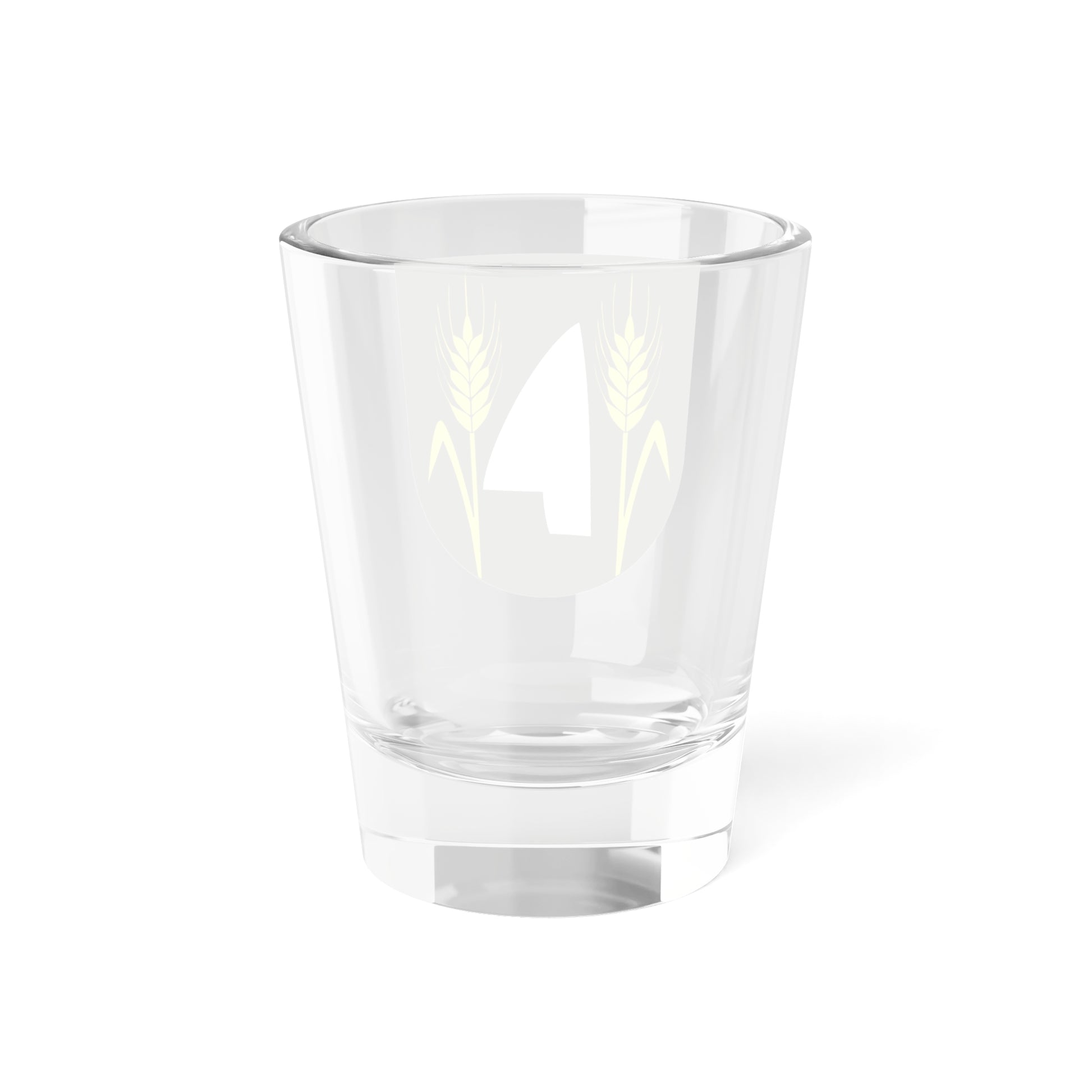 This shot glass showcases the coat of arms (CoA) of Jarovce, a borough of Bratislava, Slovakia, a striking emblem steeped in agricultural heritage.