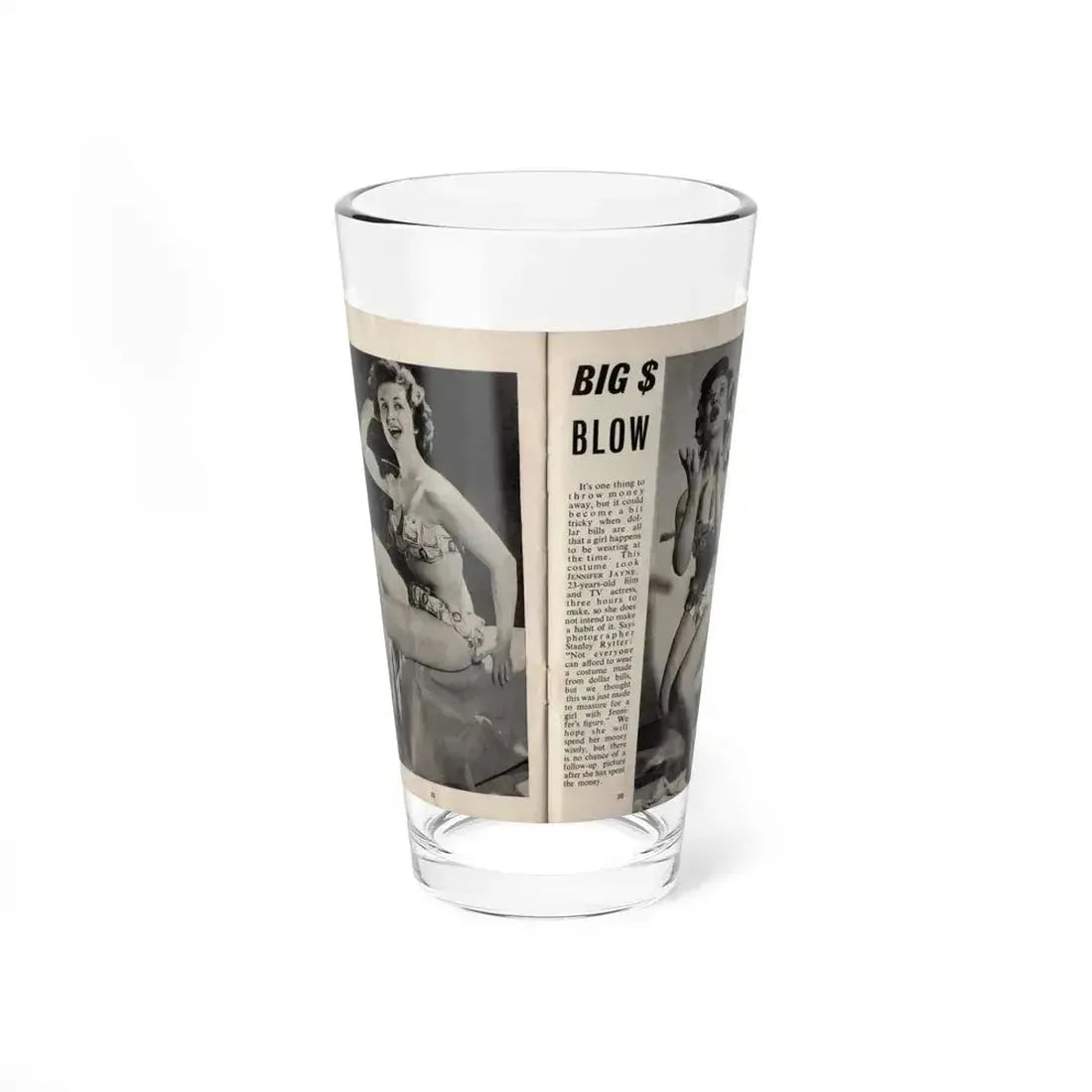 Jennifer Jayne #14 - Pages 32 & 33 Pages 1 & 2 of 2 with, Jen 2 Full Body B&W Pin-Ups+Brief Article from SPOT ON April '54 Pocket Magazine (Vintage Female Icon) Pint Glass 16oz