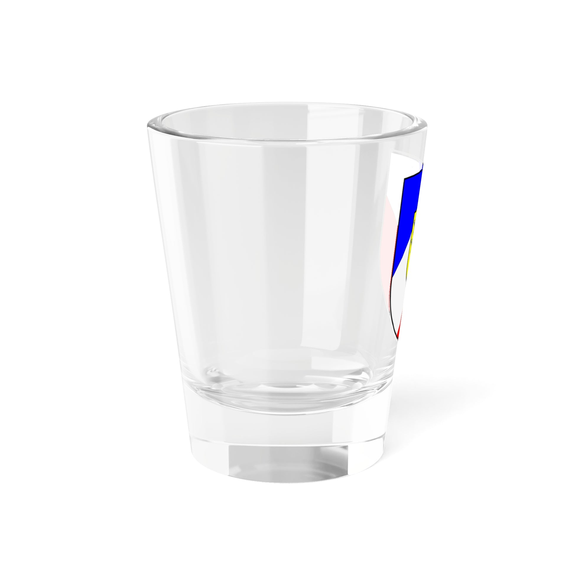 This shot glass showcases the intricate coat of arms of the Jägerbataillon 511, a former light infantry battalion of the German Bundeswehr. The design is a vibrant testament to the unit's heritage and location.