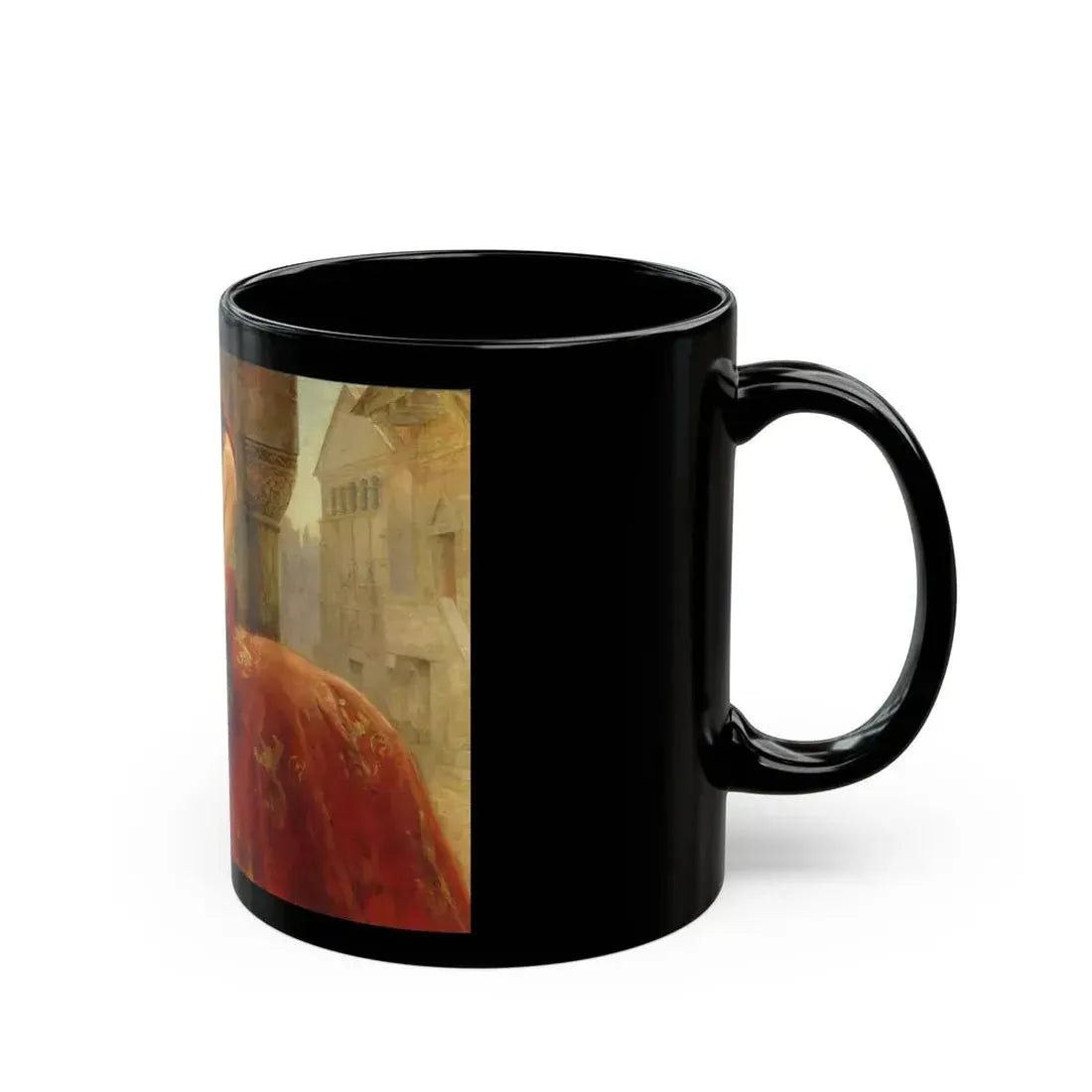 This Black Coffee Mug showcases an iconic artwork titled "Lady Godiva" by John Collier from 1897. The design on the mug is inspired by Collier's painting which depicts Lady Godiva, a legendary figure from medieval England who famously rode through Coventry to protest her husband's excessive taxes. The artwork is known for its rich detail and romanticized portrayal of Lady Godiva, making it a captivating choice for anyone interested in historical art or English folklore.