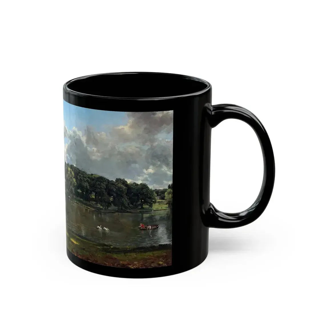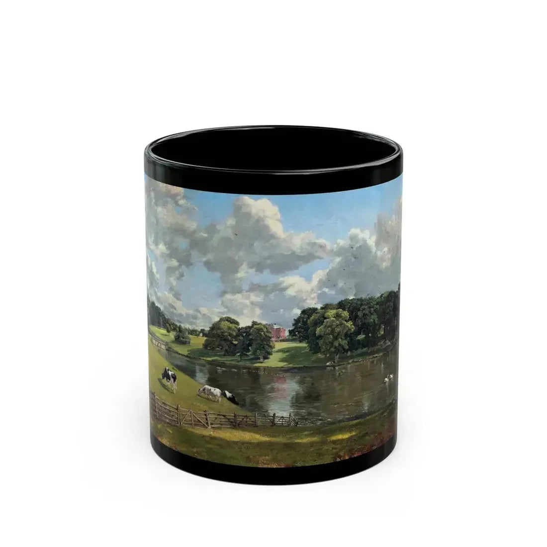 Experience a touch of history with this John Constable-inspired black coffee mug. The design showcases Constable's iconic masterpiece, "Wivenhoe Park, Essex," a quintessential English landscape painting that beautifully captures the picturesque charm of 19th-century England. This mug makes an ideal gift for art enthusiasts, history buffs, and those who appreciate unique and cool drinkware.