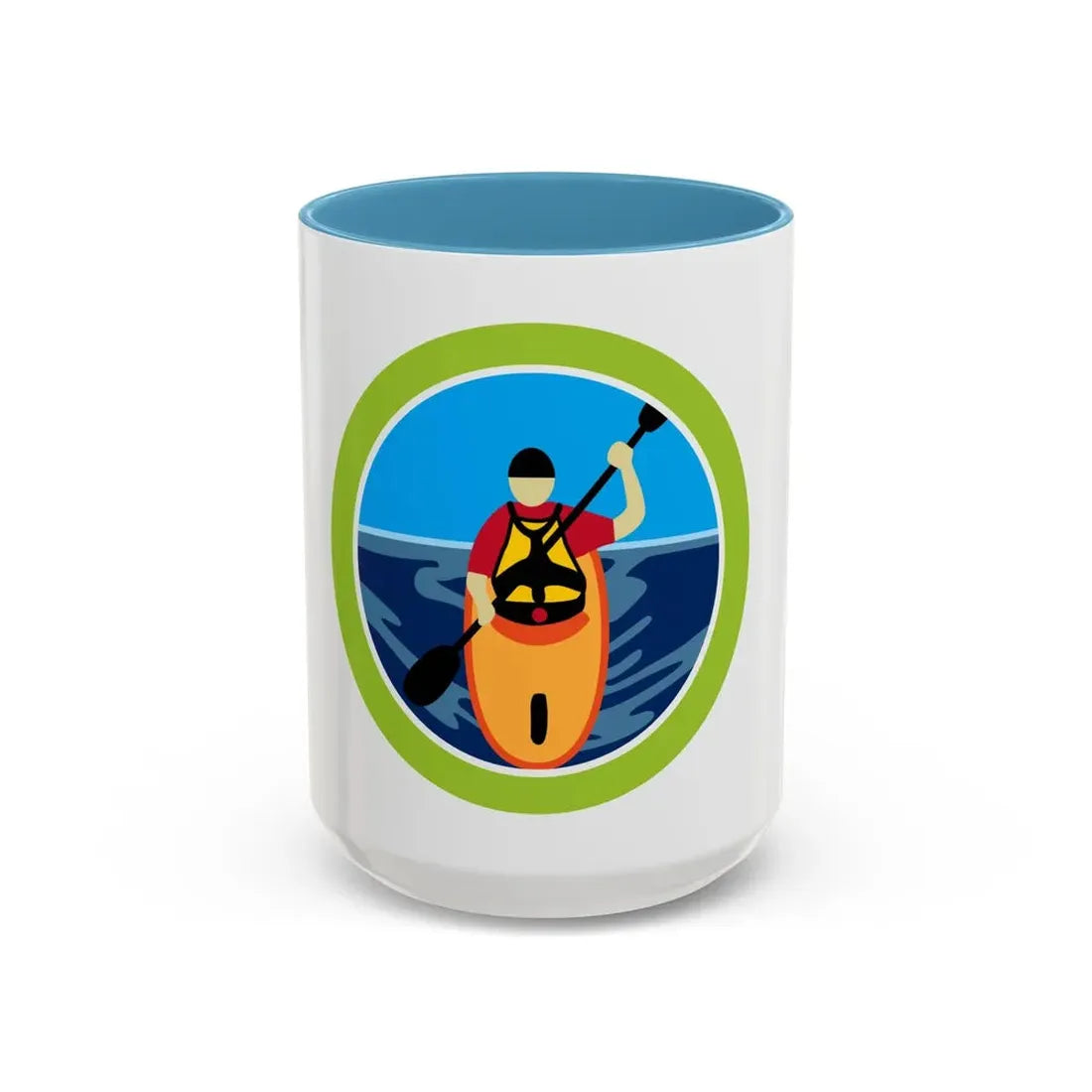 This Kayaking (Boy Scout Merit Badge) Accent Coffee Mug is a perfect blend of adventure and nostalgia. Designed for those who cherish the outdoors and the spirit of scouting, this mug showcases the emblem associated with the Kayaking merit badge. The graphic on the mug represents a paddler skillfully navigating through calm waters, symbolizing the mastery and confidence gained from earning this badge.