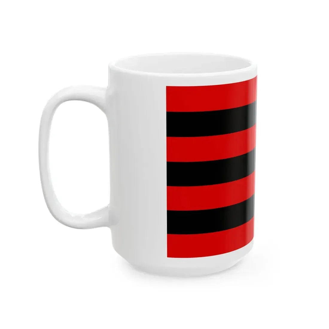The Kihelkonna valla lipp (Estonian for "Kihelkonna Wall Flag") White Coffee Mug is a unique piece of Estonian cultural artistry that embodies the historical spirit of Kihelkonna, a small town on the island of Hiiumaa. The design features the wall flag of Kihelkonna, a symbol that dates back to the 16th century and represents the town's resilience and rich maritime history. This mug is more than just a drinkware item; it serves as an excellent conversation starter for anyone interested in Estonian heritage or coastal towns.