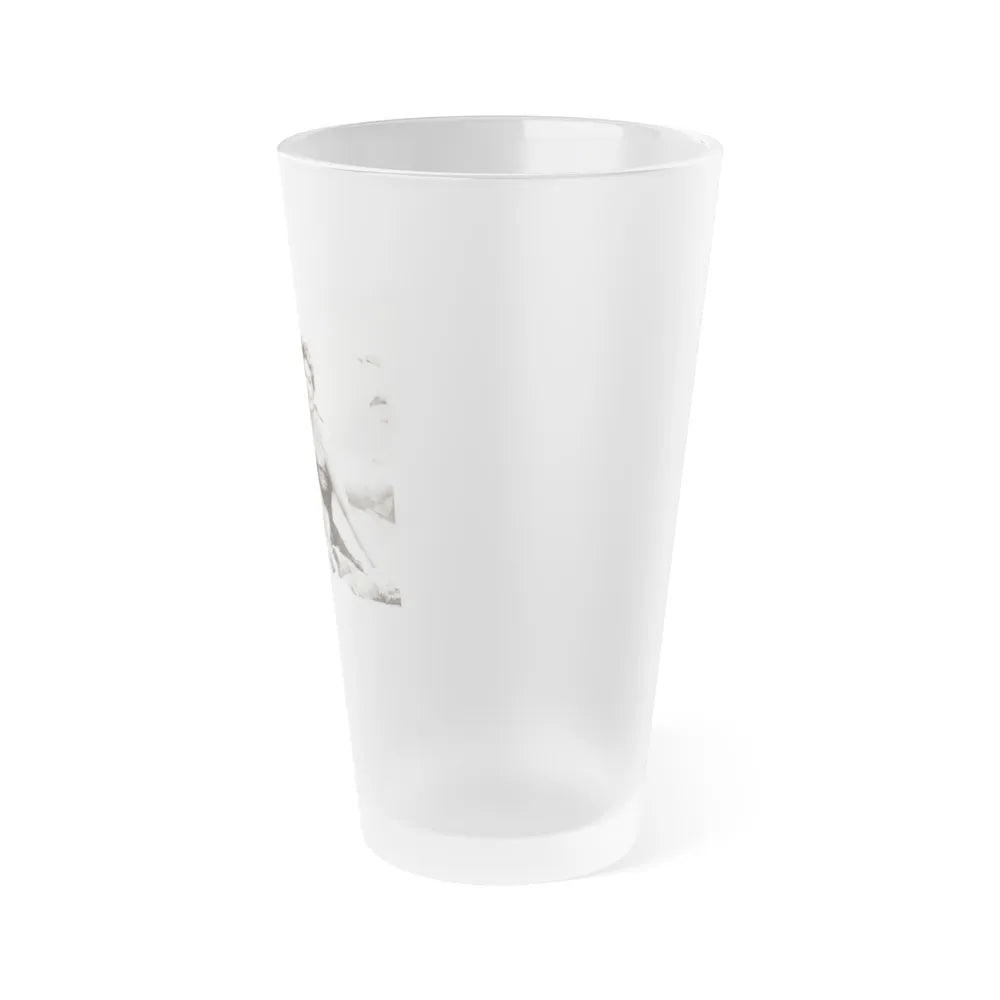 Frosted pint glass (16 oz / ≈0.47 L) with a soft matte finish and semi-translucent, one-sided print. Tough enough for bar and restaurant use, dishwasher safe, and BPA-free — a modern take on classic pintware.
