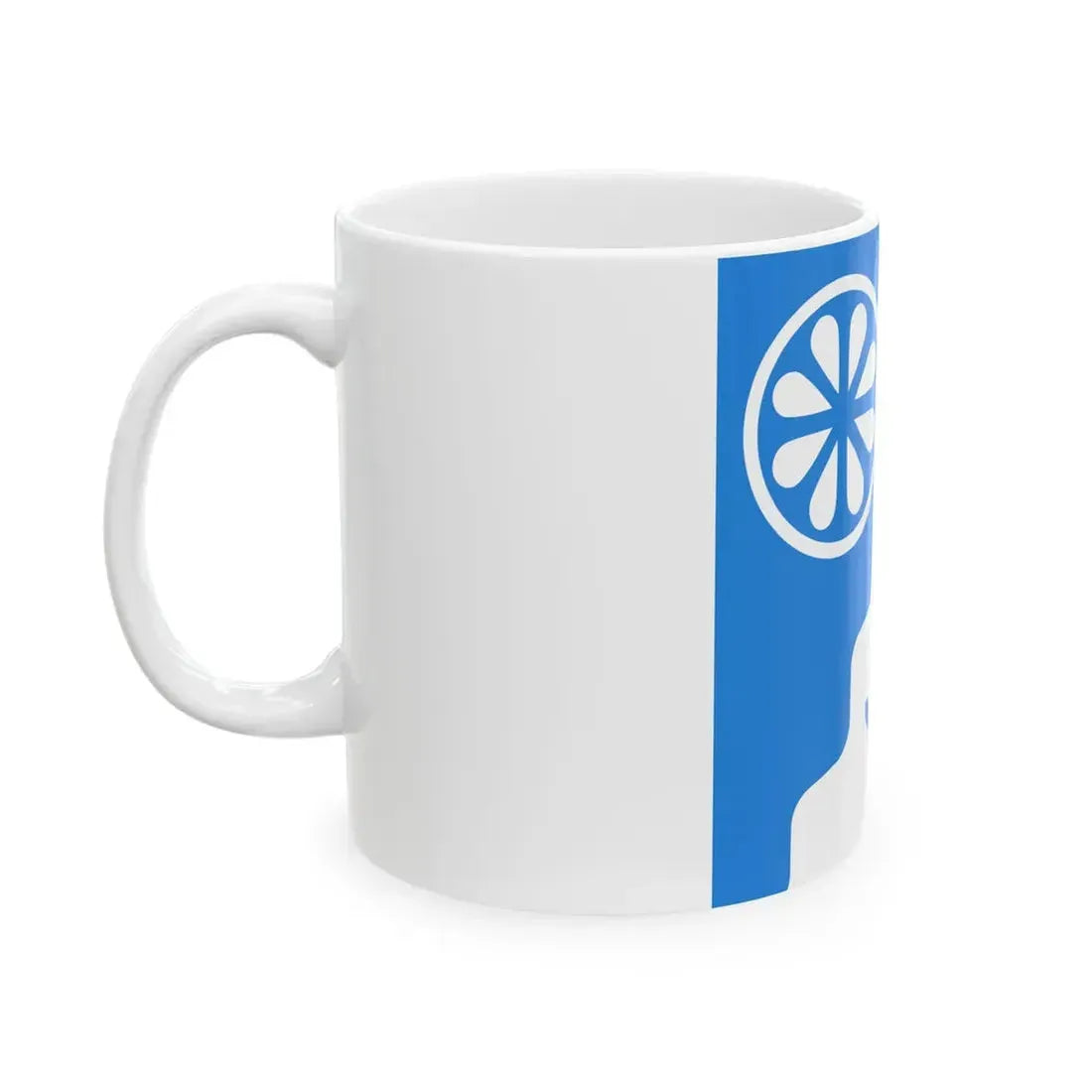 Sturdy white ceramic mugs available in 11 oz (≈330 ml) and 15 oz (≈440 ml), with a glossy finish and comfortable C-handle — microwave and dishwasher safe, and made from lead- and BPA-free materials.
