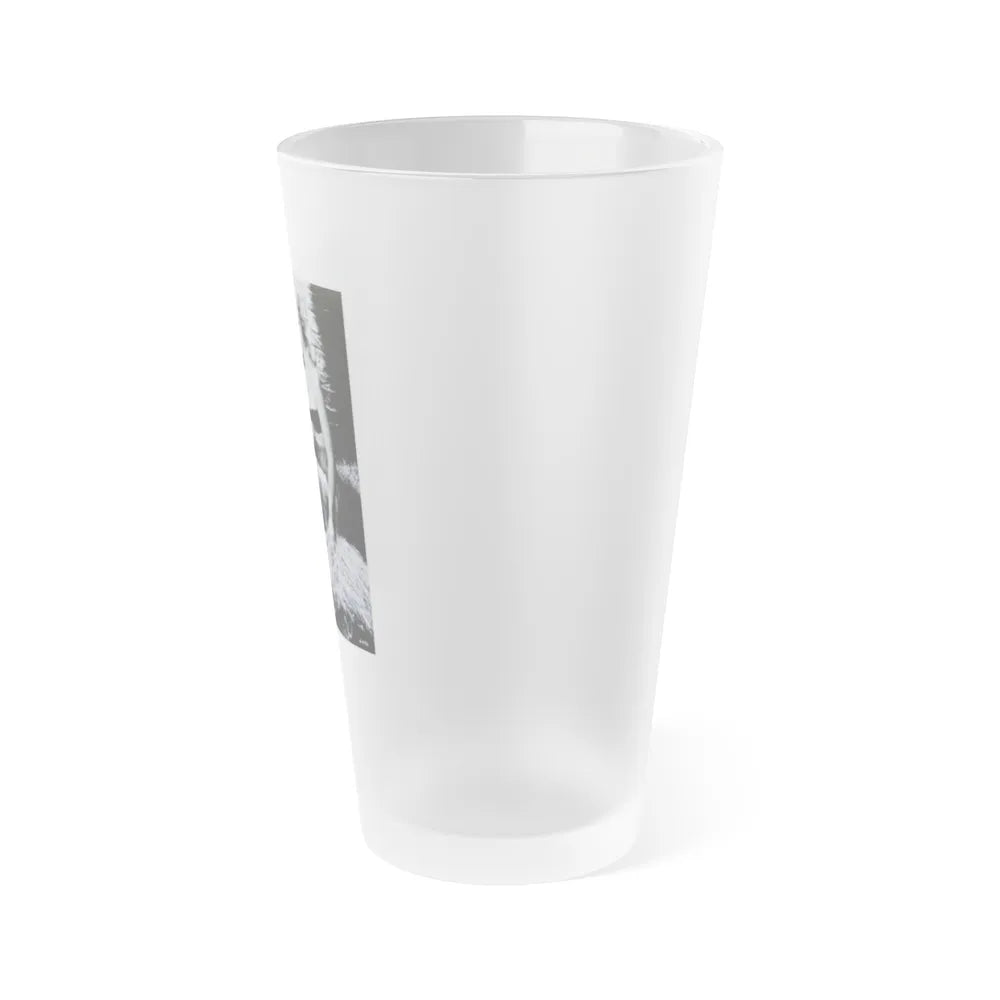 Frosted pint glass (16 oz / ≈0.47 L) with a soft matte finish and semi-translucent, one-sided print. Tough enough for bar and restaurant use, dishwasher safe, and BPA-free — a modern take on classic pintware.
