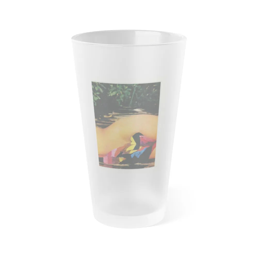 Frosted pint glass (16 oz / ≈0.47 L) with a soft matte finish and semi-translucent, one-sided print. Tough enough for bar and restaurant use, dishwasher safe, and BPA-free — a modern take on classic pintware.