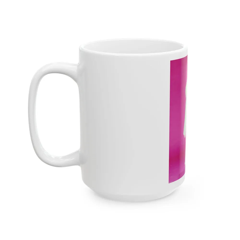 Sturdy white ceramic mugs available in 11 oz (≈330 ml) and 15 oz (≈440 ml), with a glossy finish and comfortable C-handle — microwave and dishwasher safe, and made from lead- and BPA-free materials.