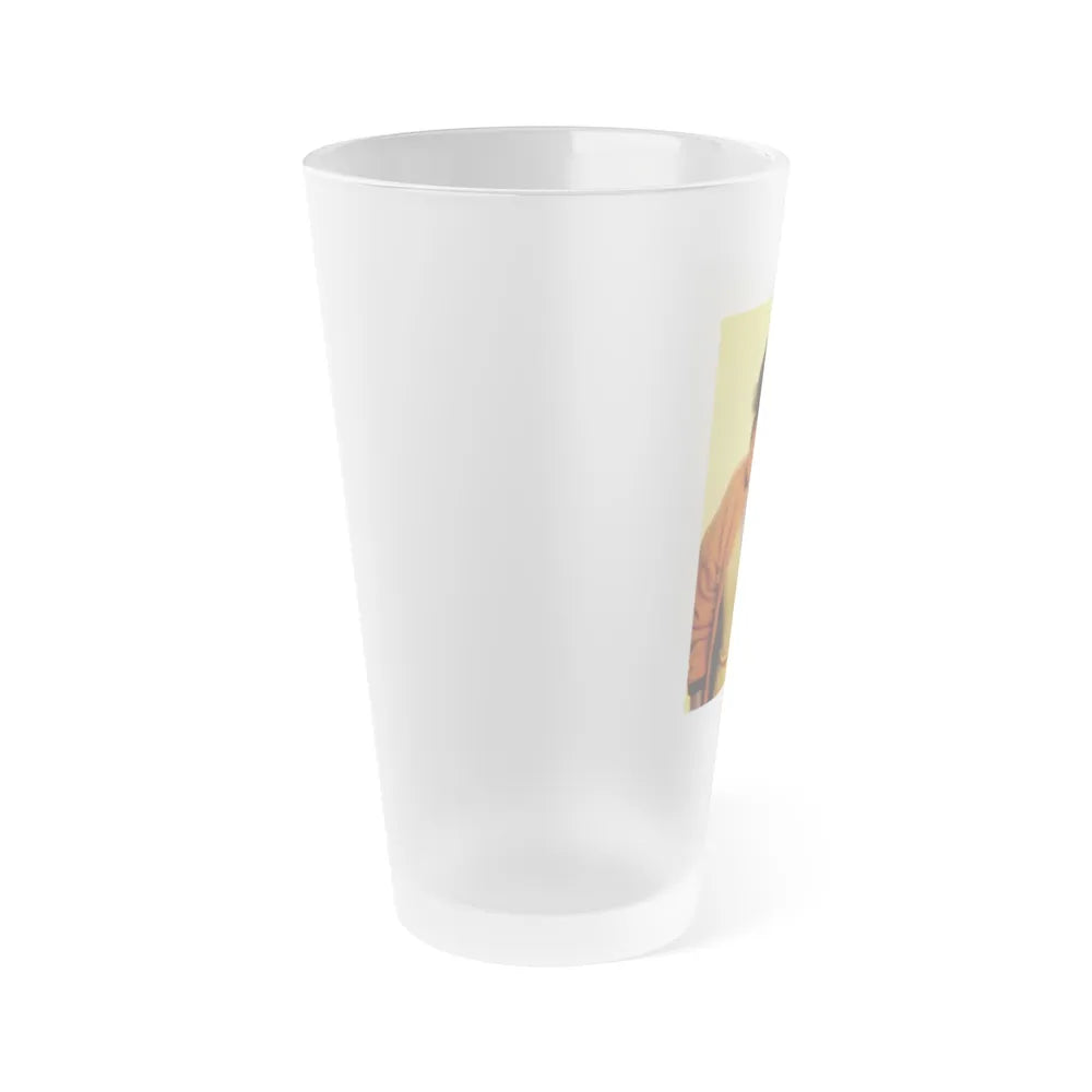 Frosted pint glass (16 oz / ≈0.47 L) with a soft matte finish and semi-translucent, one-sided print. Tough enough for bar and restaurant use, dishwasher safe, and BPA-free — a modern take on classic pintware.