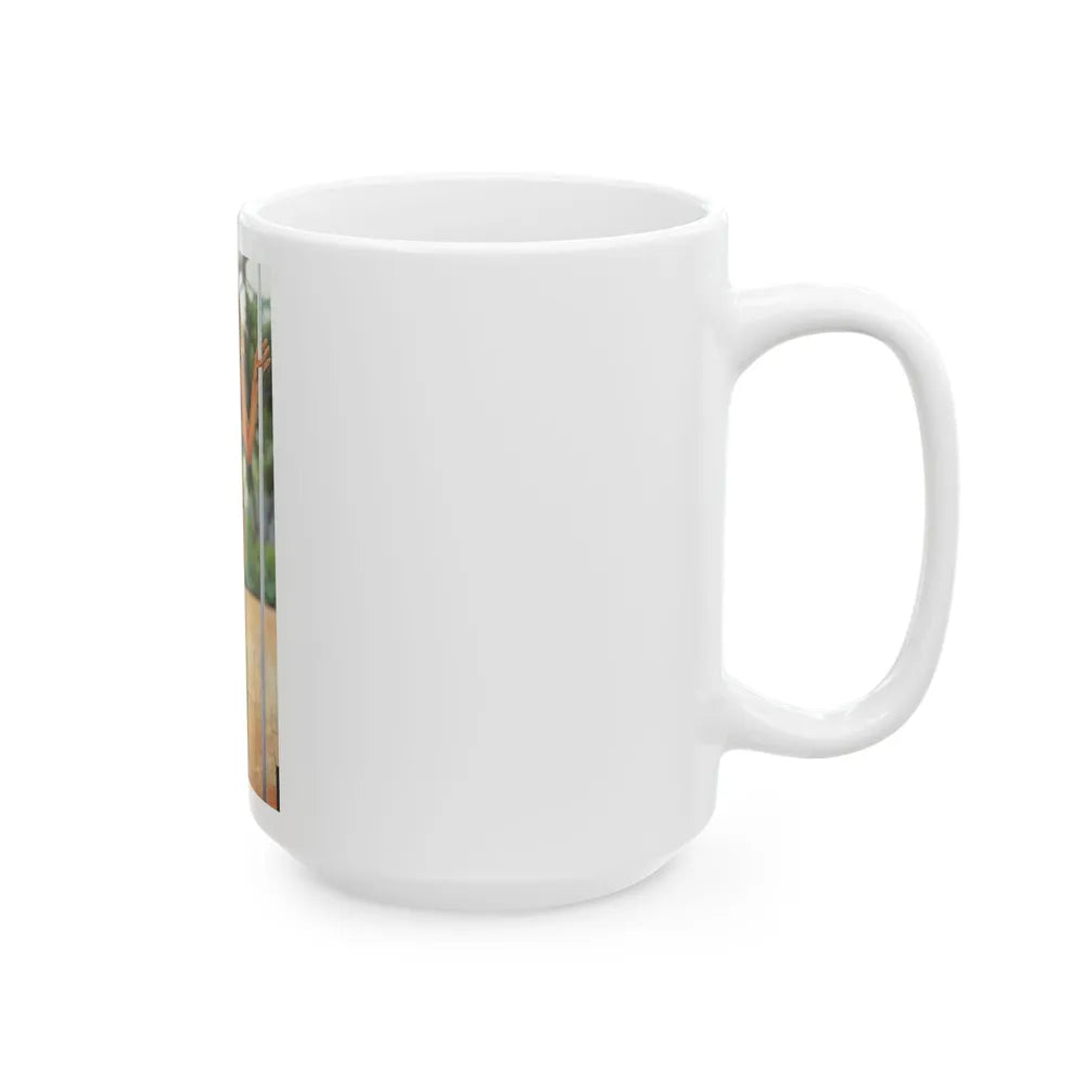 Sturdy white ceramic mugs available in 11 oz (≈330 ml) and 15 oz (≈440 ml), with a glossy finish and comfortable C-handle — microwave and dishwasher safe, and made from lead- and BPA-free materials.